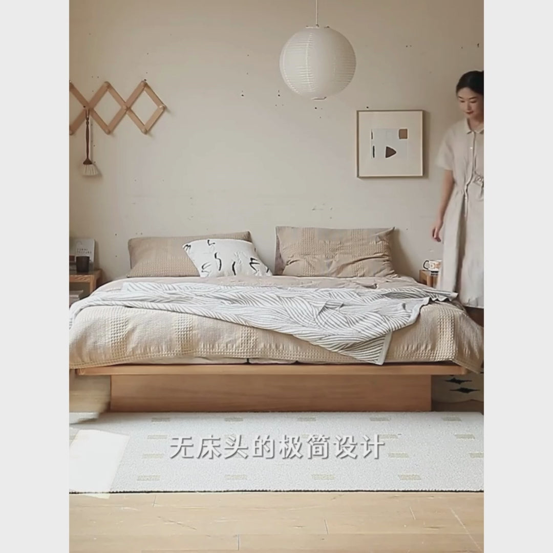 OAK Solid Wood platform bed, headboard-free bed Suspended Bed