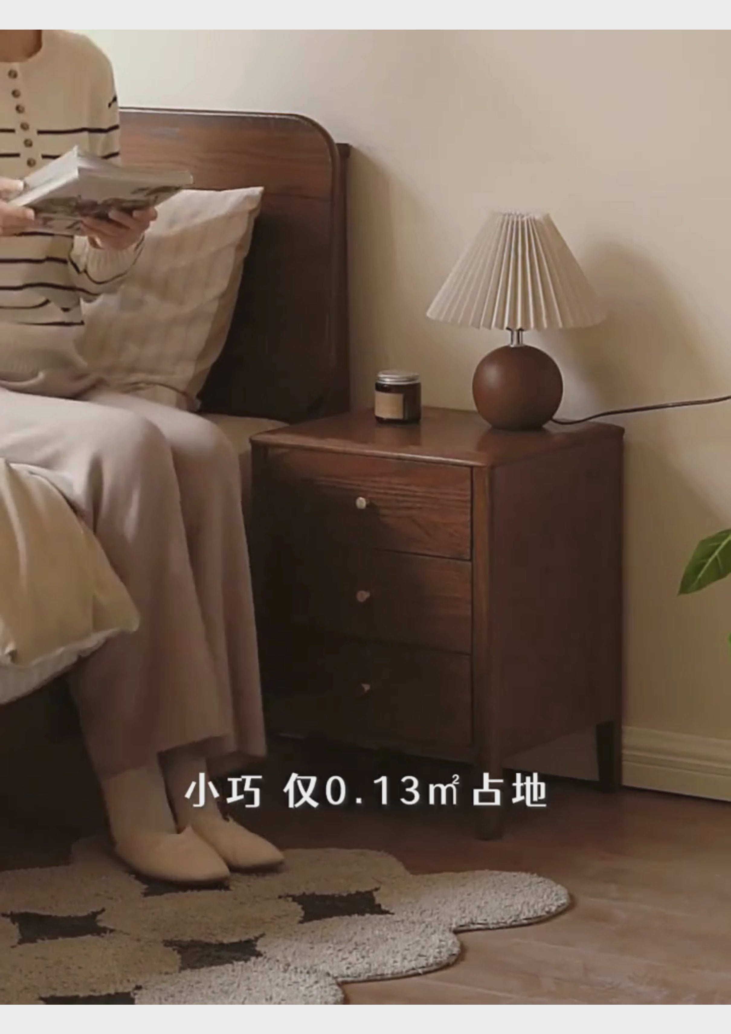 Oak Solid Wood Modern Minimalist Three-Drawer Nightstand