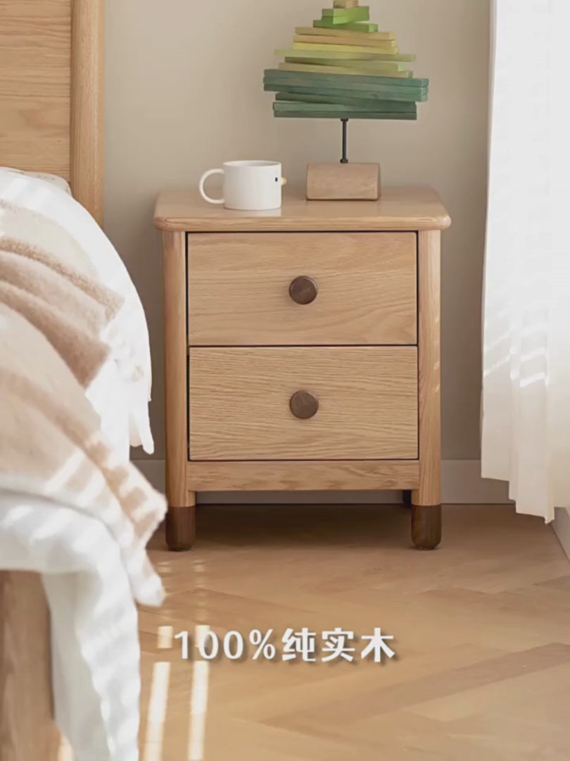 Oak, Beech Solid Wood Two-Drawer Nightstand