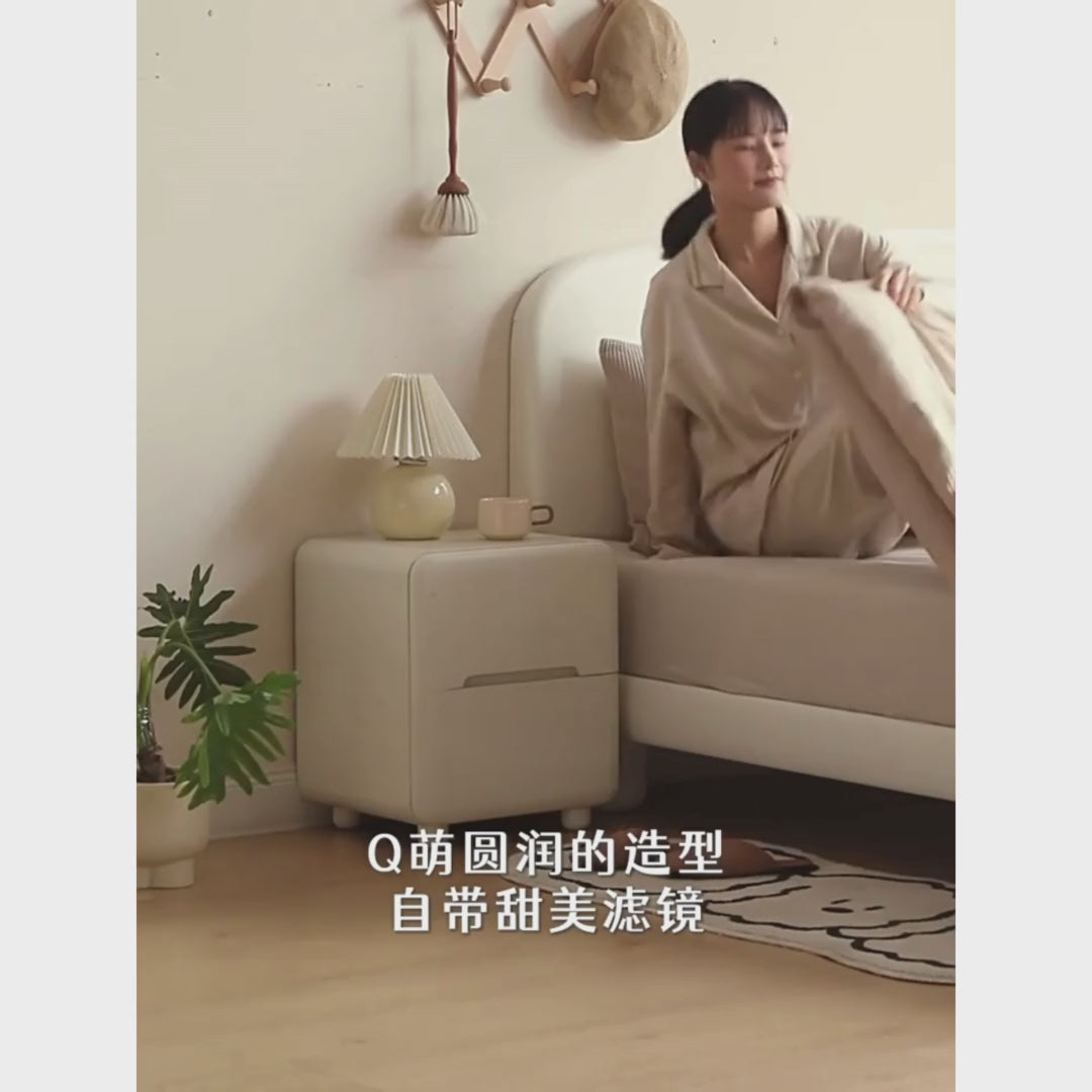 Tulipwood Solid Wood, Solid RubberWood Warm White Two-Drawer Nightstand.