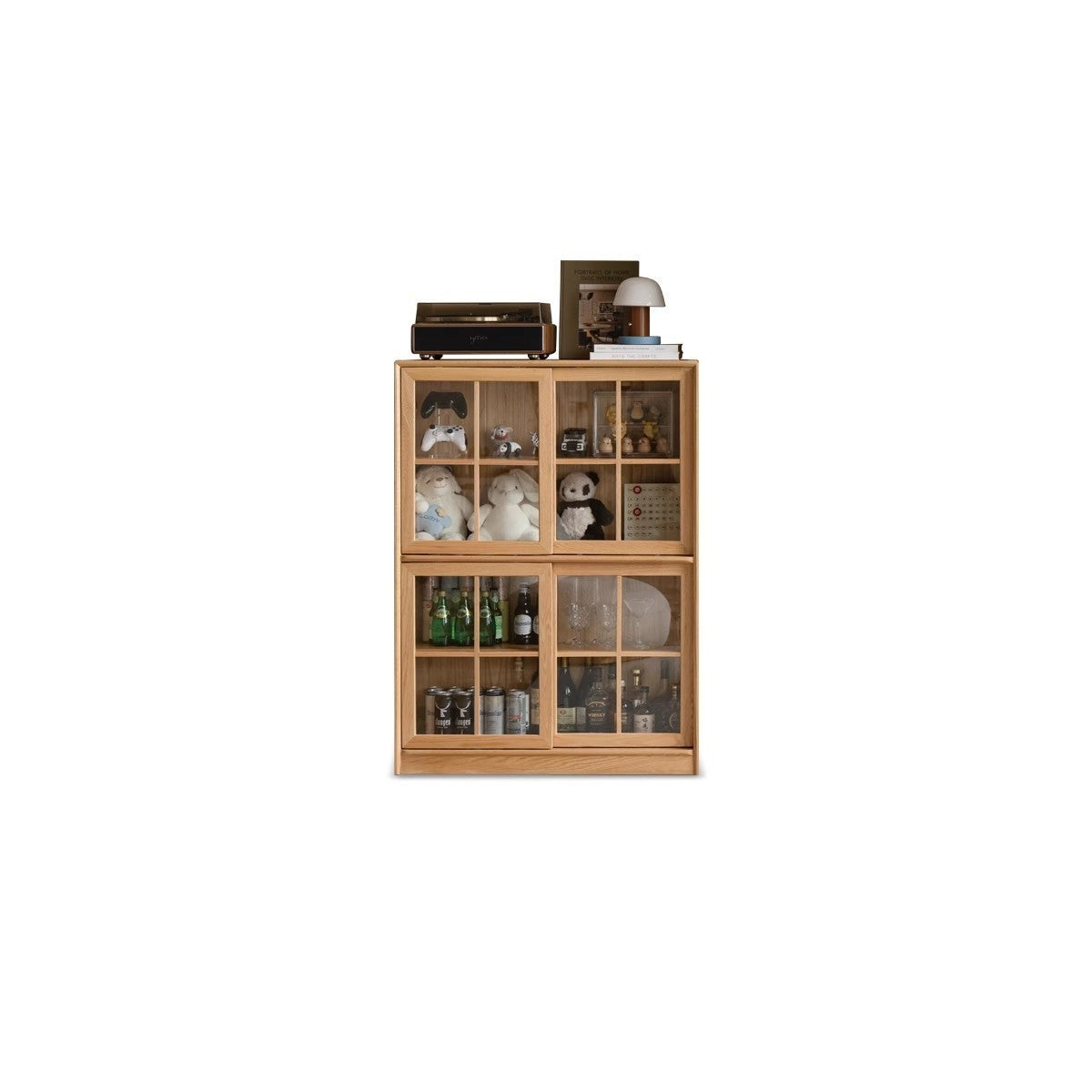 Oak, Beech Solid Wood Bookcase Floor to Floor Free Combination Sliding Door