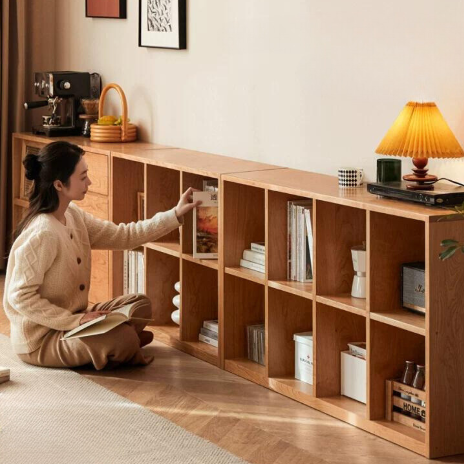 Cherry Solid Wood Vintage Floor Storage Bookcase