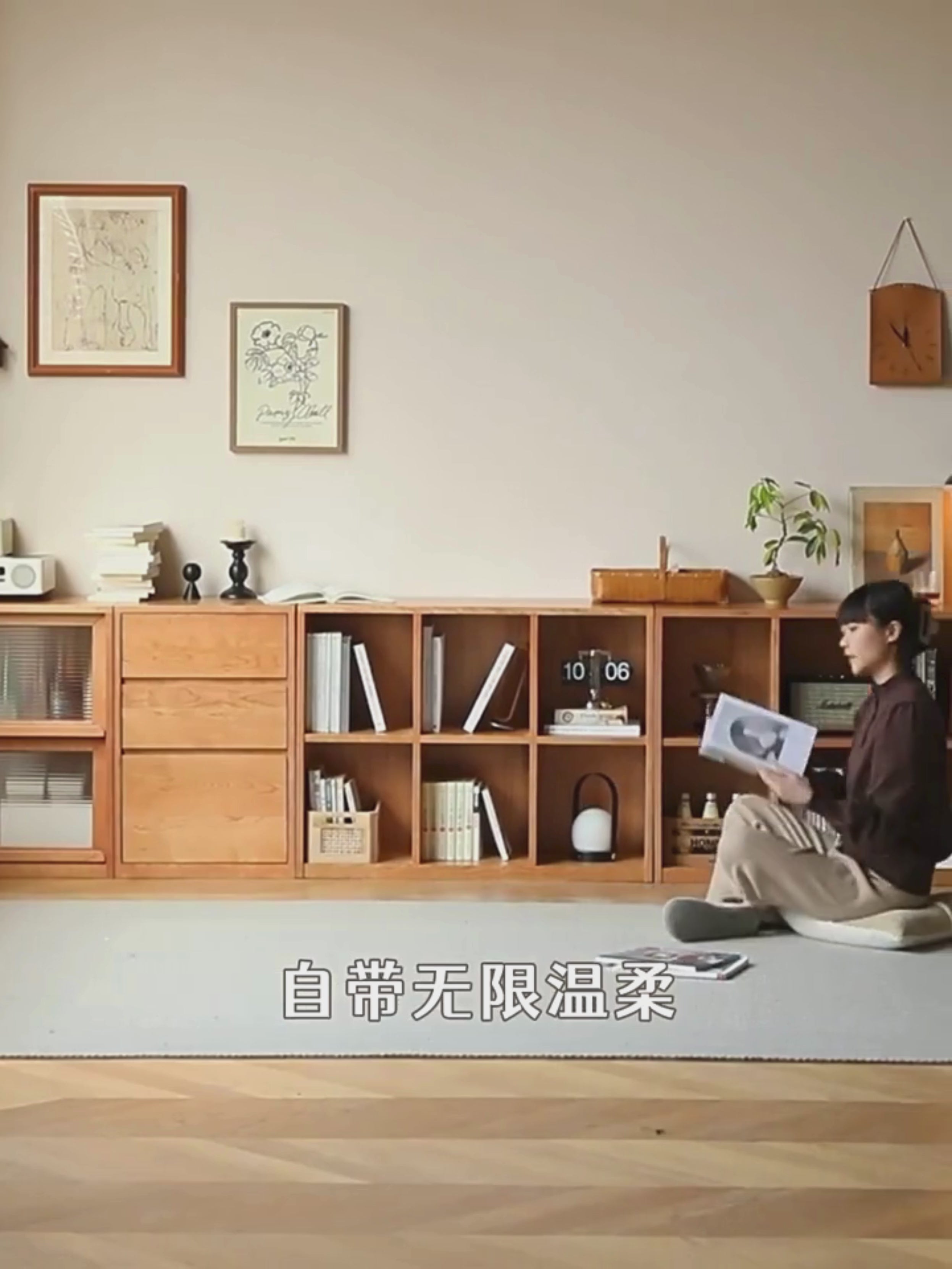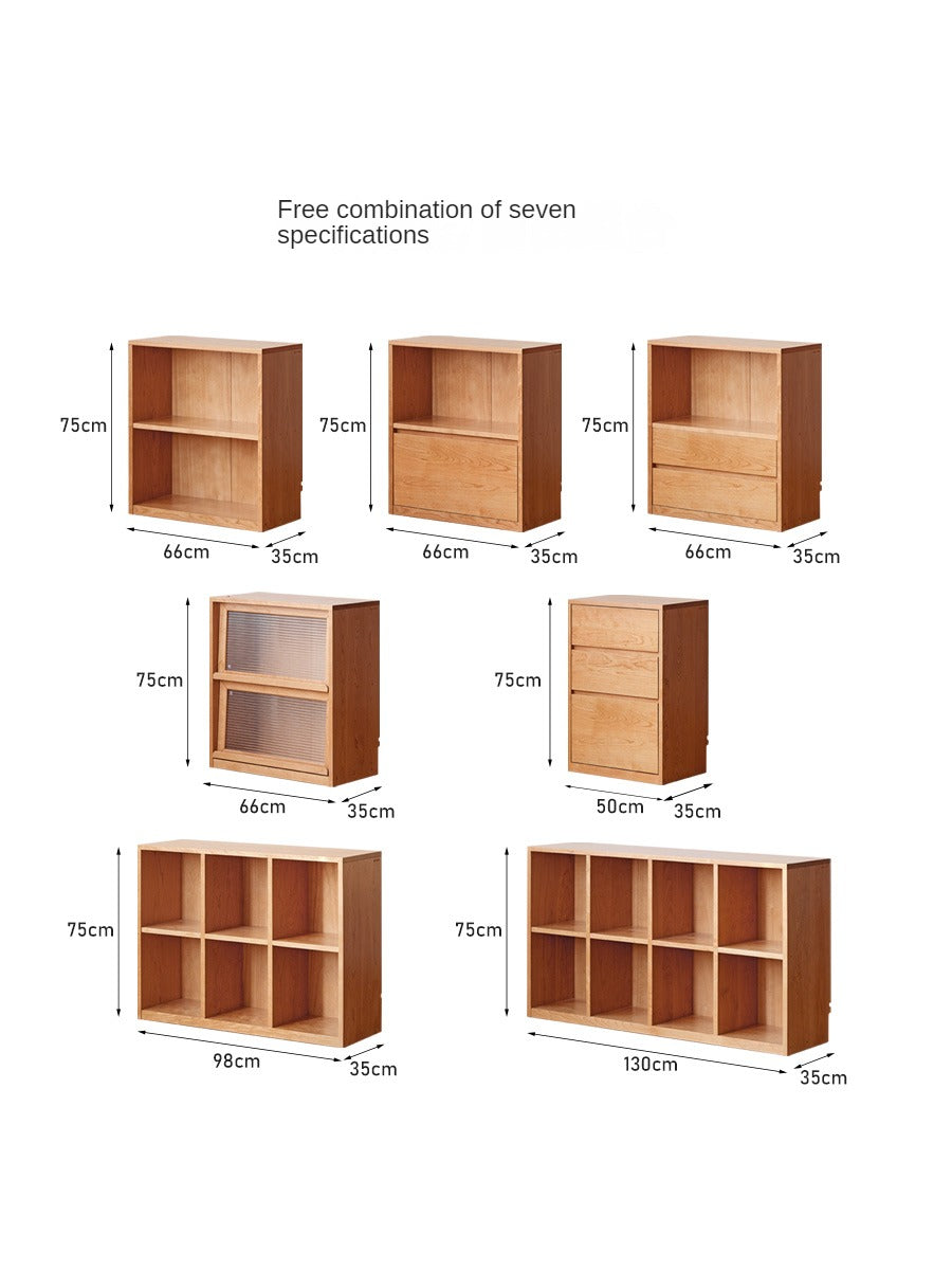 Solid wood bookcase living room wall display cabinet medieval cherry wood free combination floor storage cabinet.
