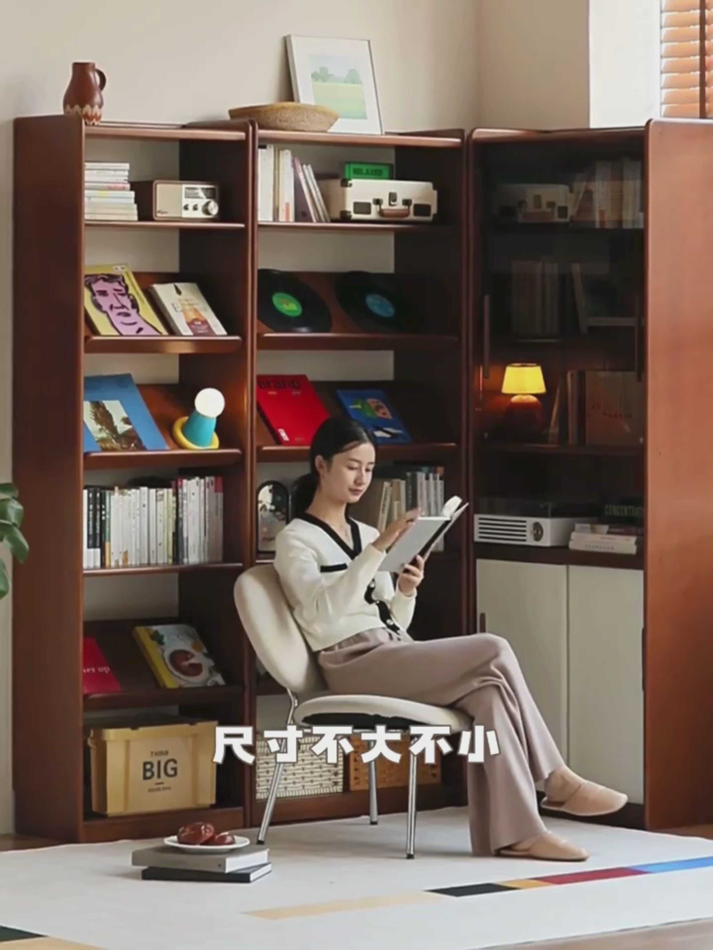 Paying tribute to the classic Danish design, using color matching aesthetics, warm white and teak colors cleverly collide to re-interpret the Medieval Bauhaus, not only the bookcase, but also the pen of space to add more vitality and personality to the home.