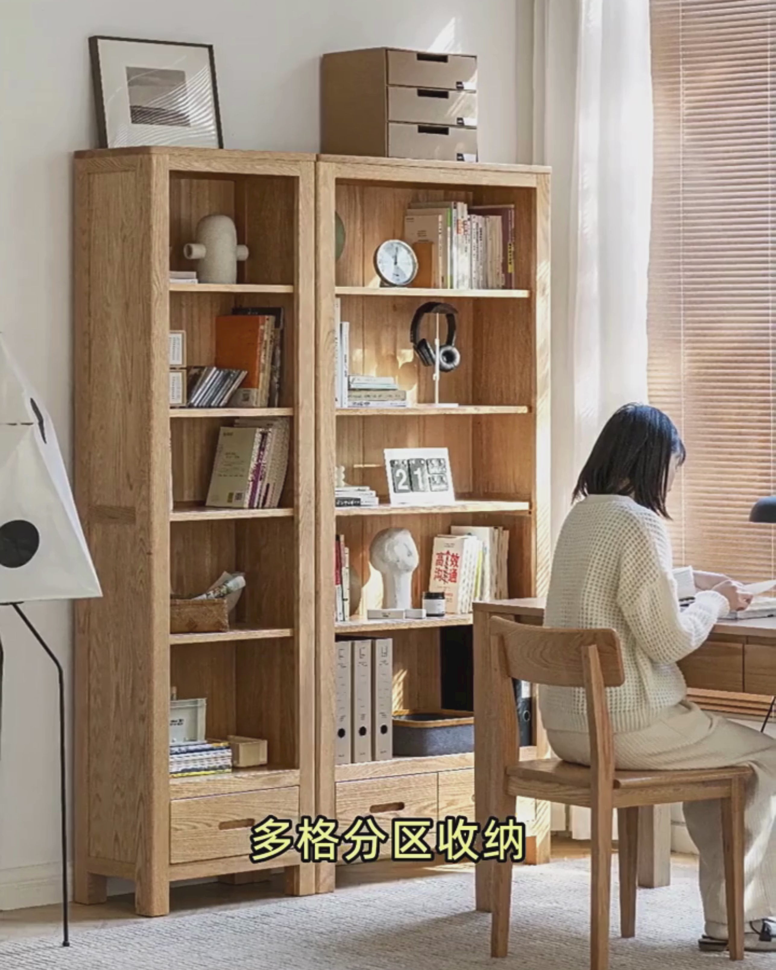 This bookcase is almost fully open, like a library display, it is very convenient to get the books you want to read, and it is very durable, the lines are simple and powerful, and the materials are thick enough to give you a solid sense of security.