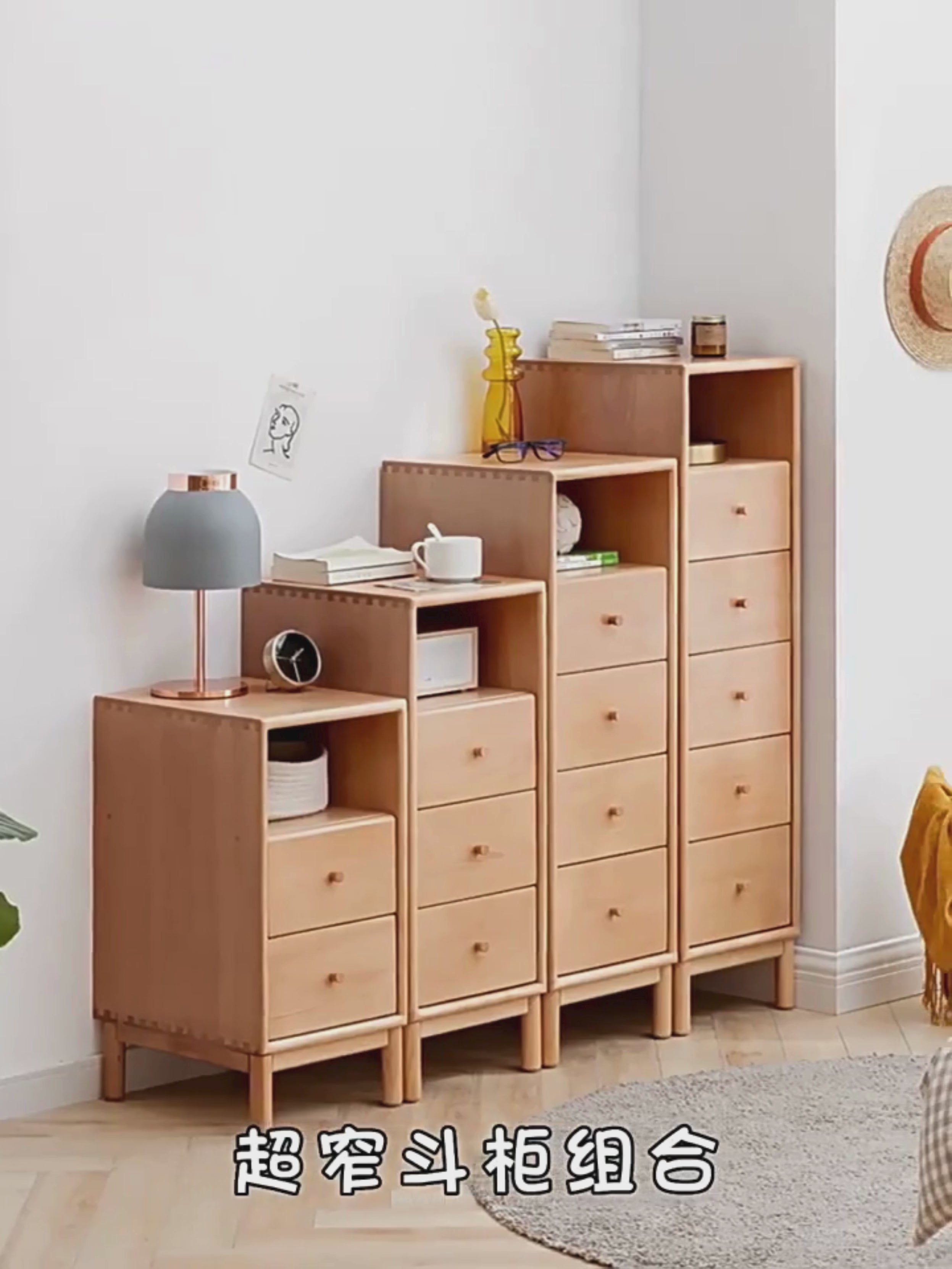 European Beech Solid Wood Storage Side Cabinet Combination