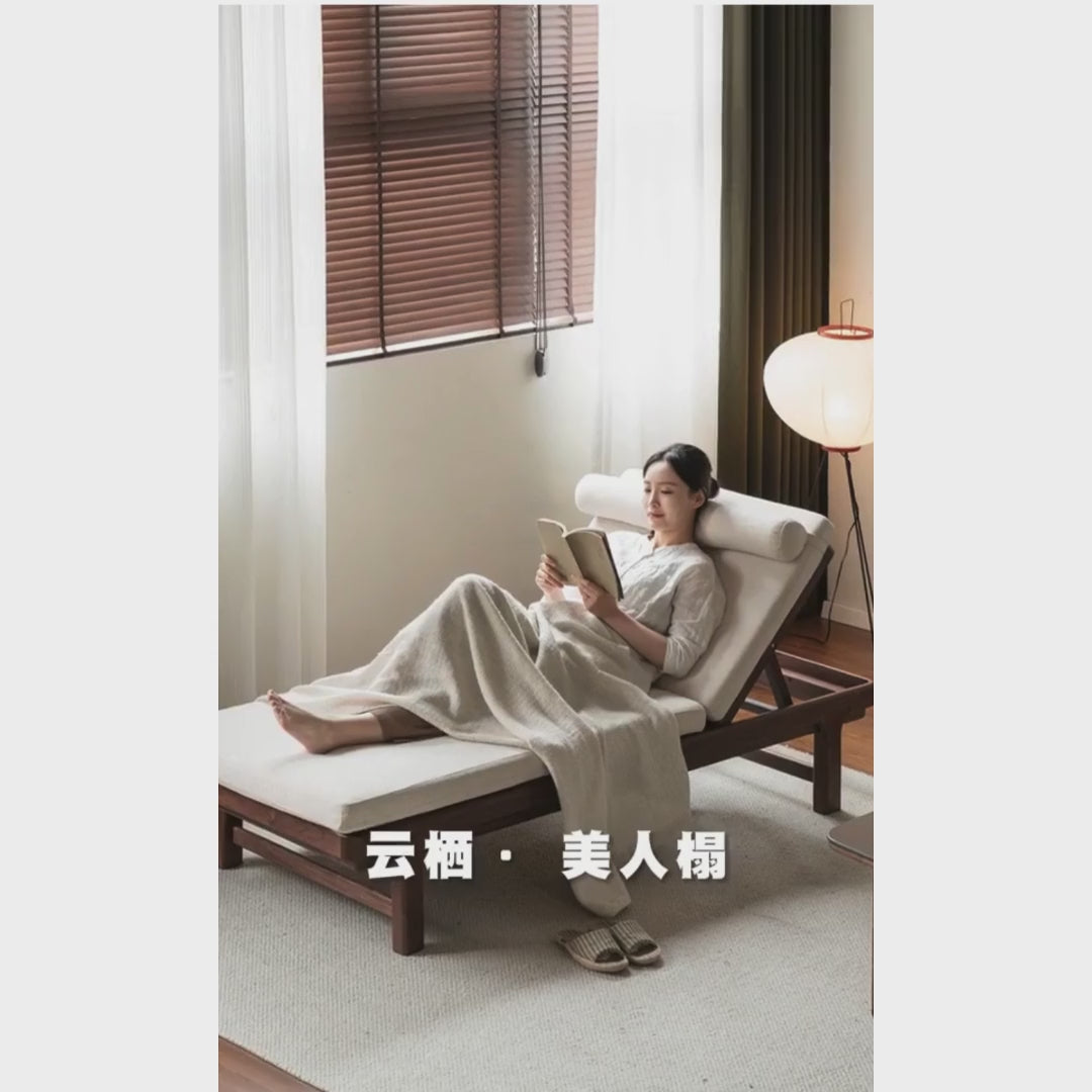 Black Walnut Solid Wood Longue Single Leisure Sofa Bed.
