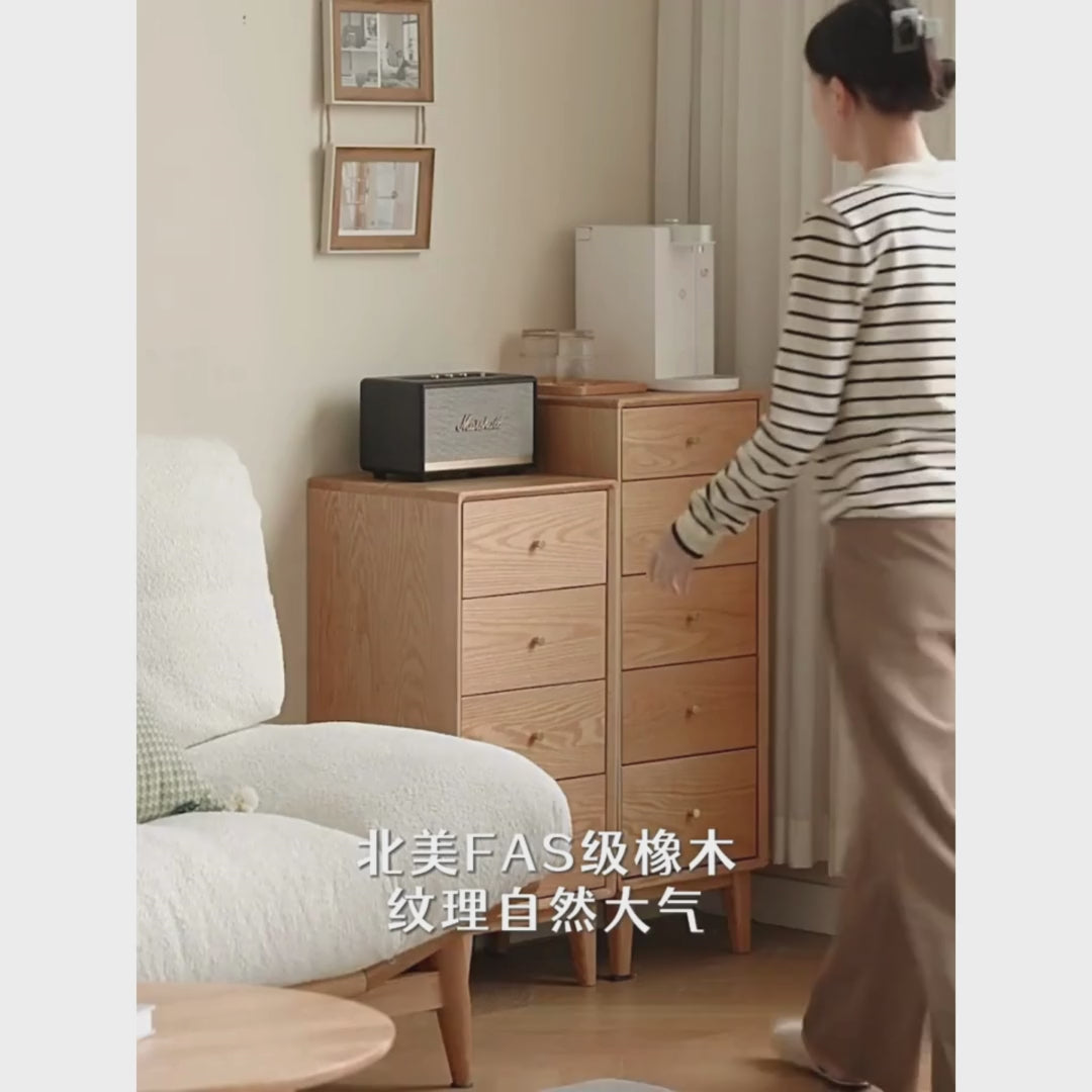 Oak, Beech Solid Wood Chest of Drawers, Multi-Functional Storage Cabinet Combination