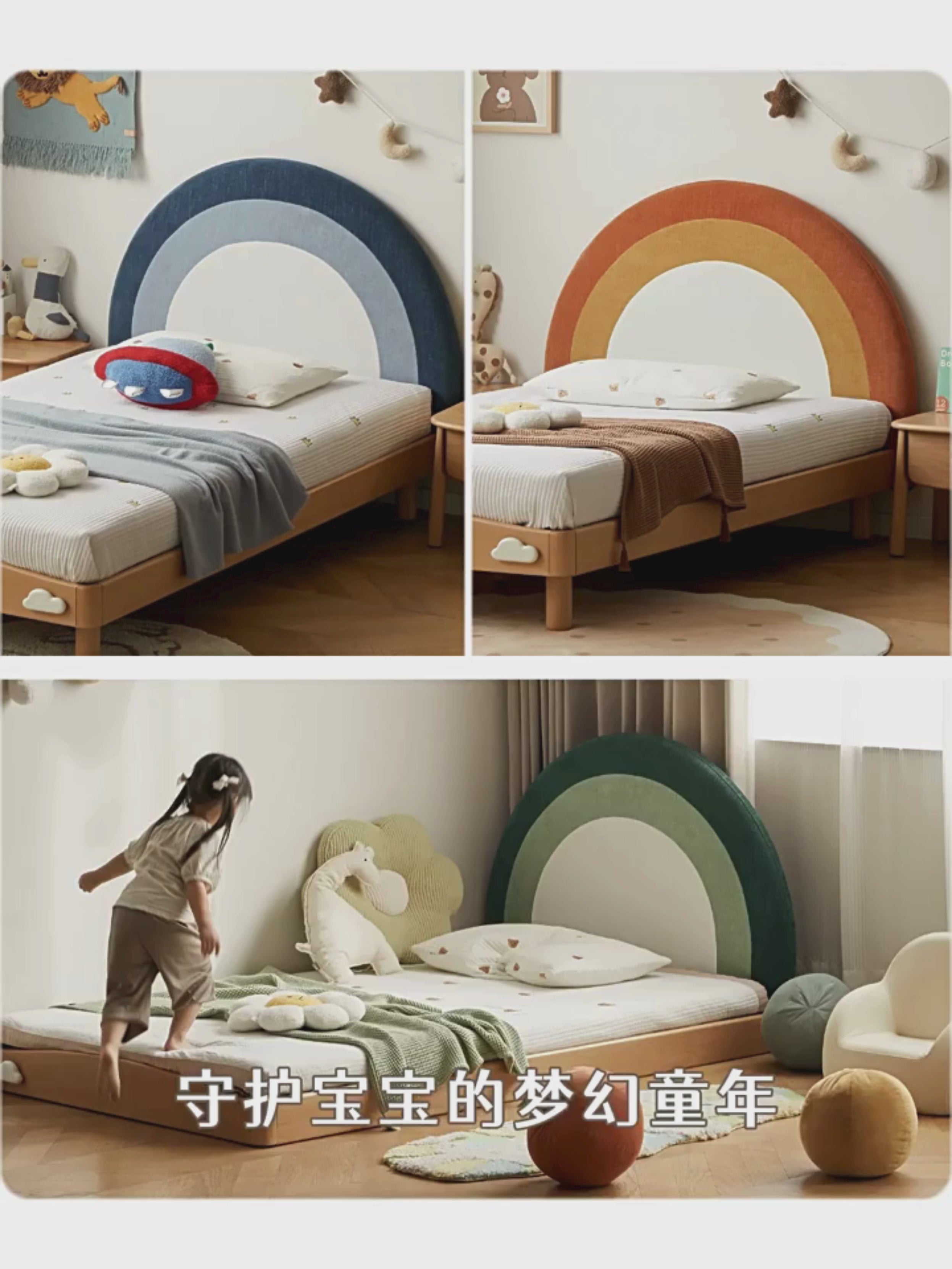 Beech Solid Wood Children's Rainbow Montessori Platform Bed.