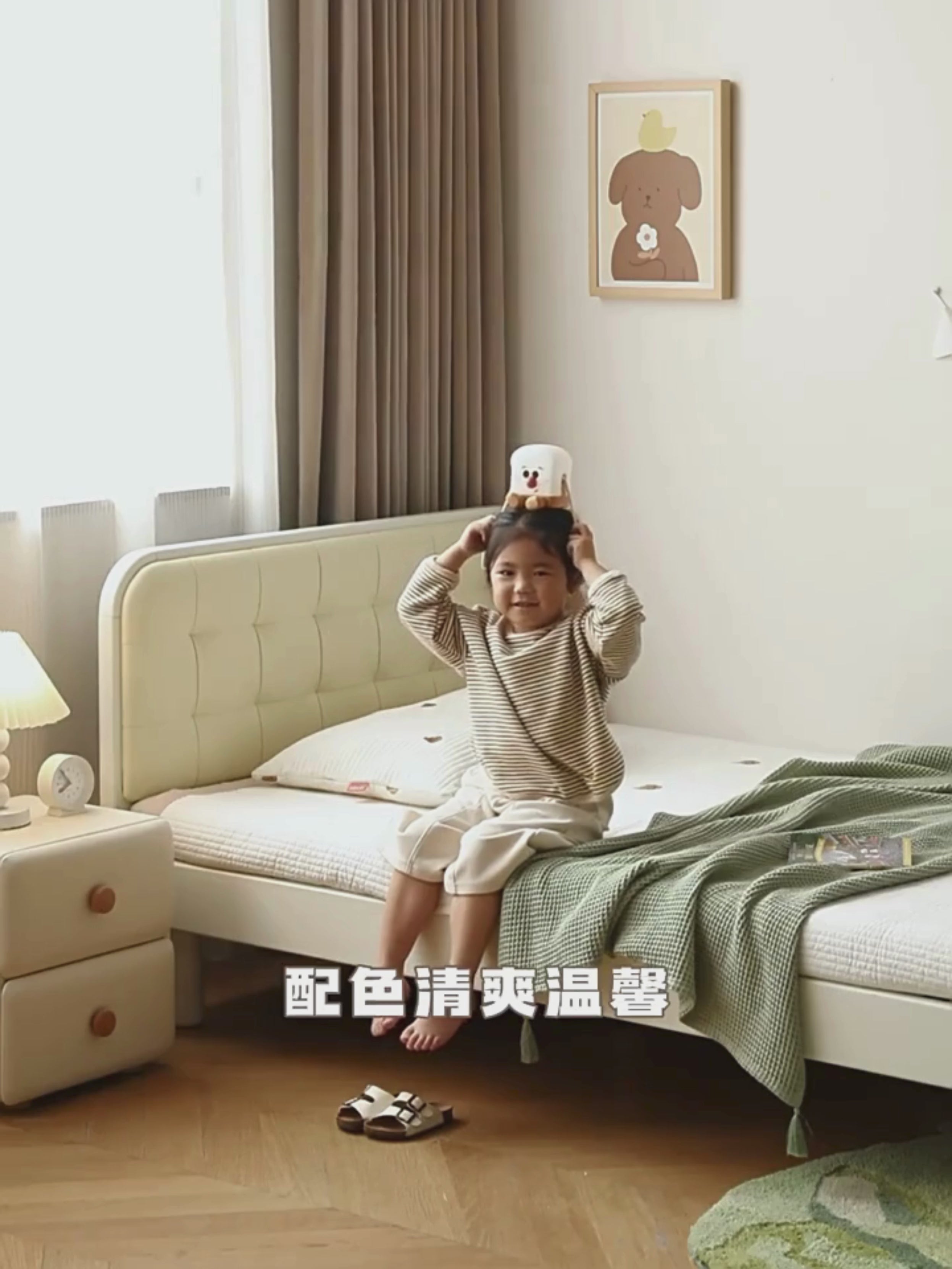 Rubber Solid Wood Children's White Cream Style Montessori Platform Bed.