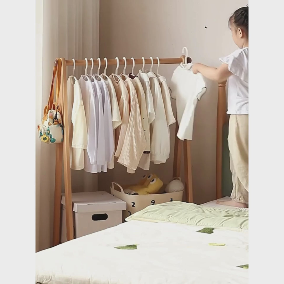 Beech Solid Wood Children's Hanger Floor Storage Rack