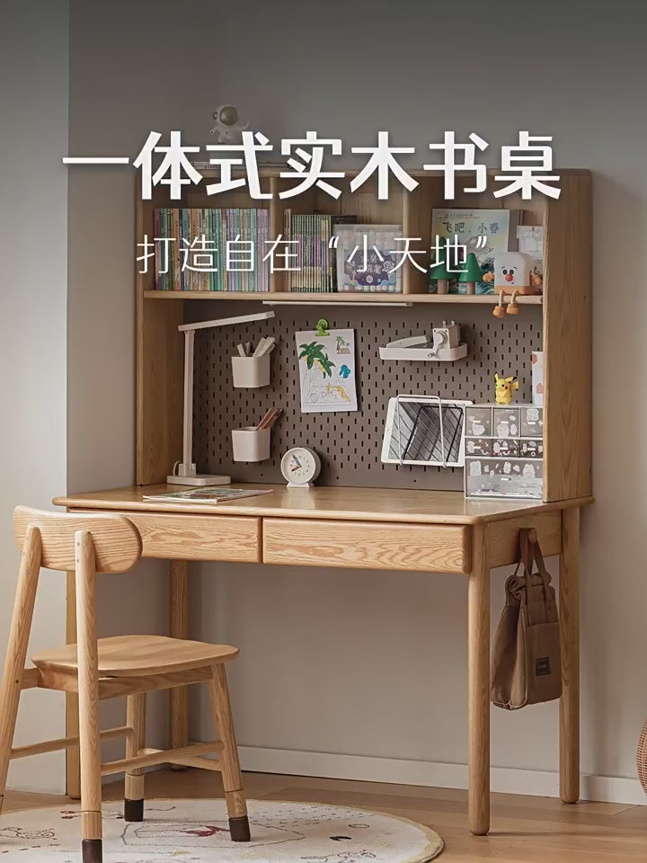 Oak, Beech Solid Wood Children's Ctudy Desk Bookshelf Integrated