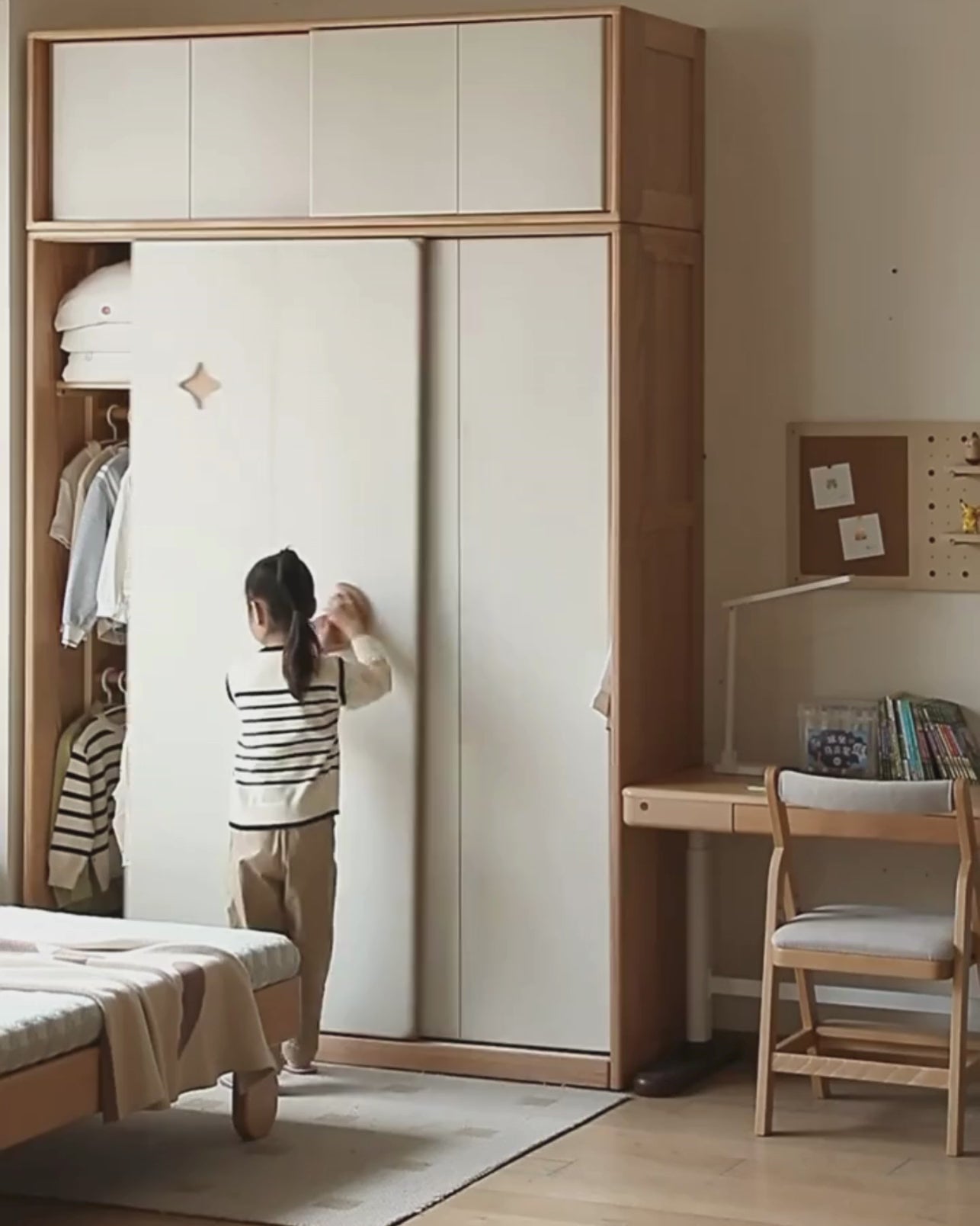 Oak Solid Wood Children's Sliding Door Wardrobe