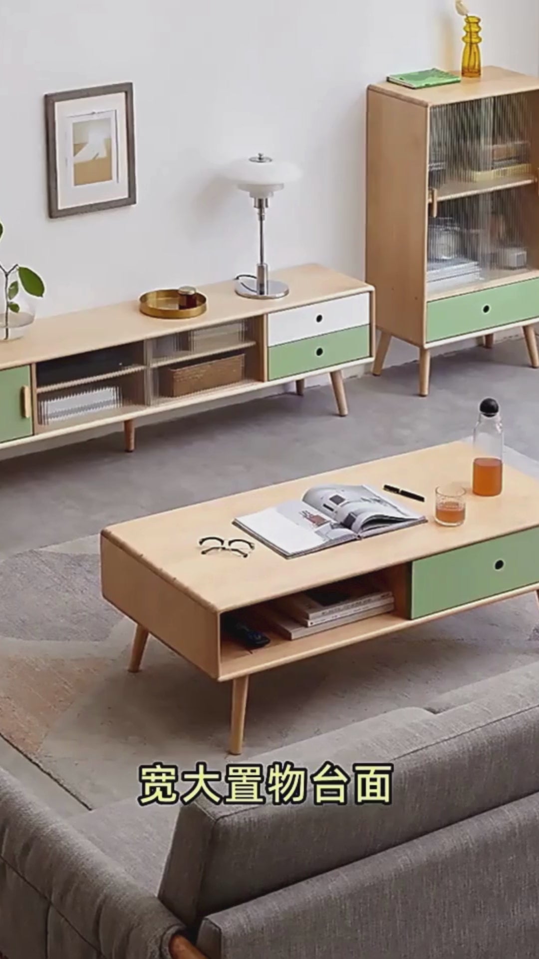 ~ Always feel that the colors in your living room are too monotonous? Try this bud green tea table. Paired with the fresh wood color, it makes the whole living room lively and quiet. In addition to being beautiful, it can also be decorated. Just the right amount of light green The storage capacity can store items on both sides, making it easy to store the little beauties of life~