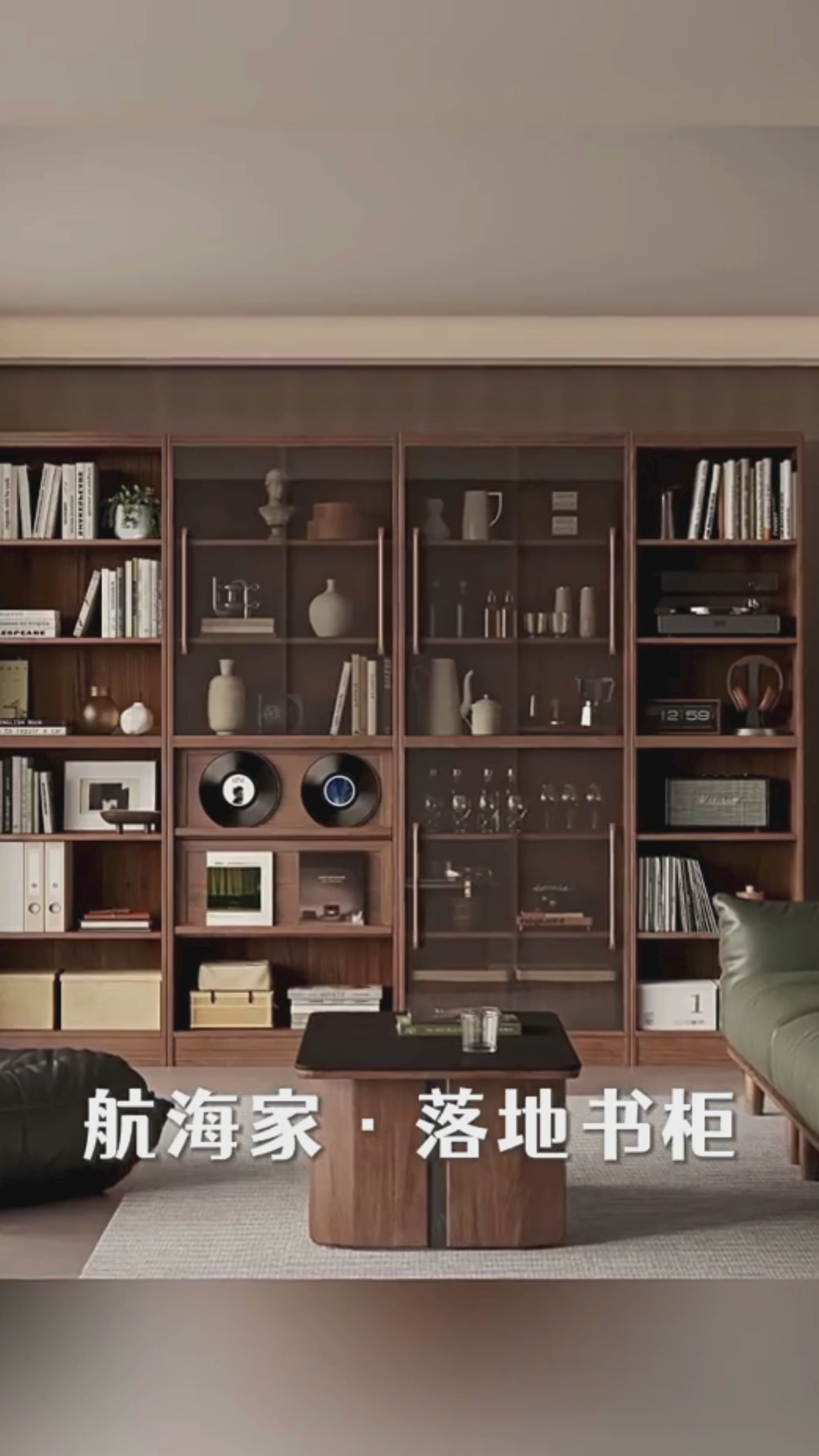Black Walnut, Oak Solid Wood Floor-Standing Bookcase with Luxury Storage Cabinet