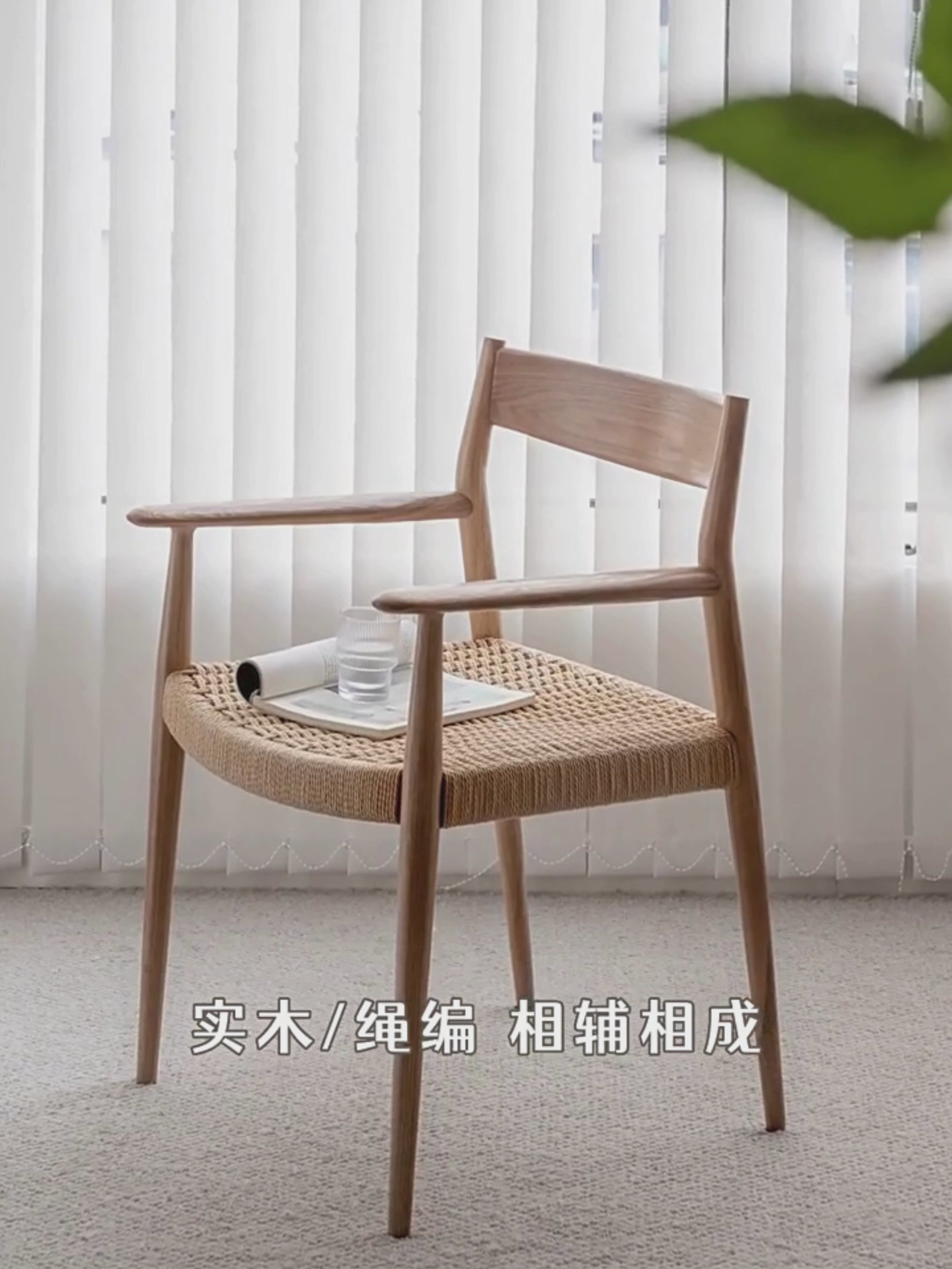 The breathable rope-braided armchair has a wide rope-braided seat surface, which is breathable and beautiful. It is not easy to get stuck for a long time. The round boat-shaped armrest design is designed to hang naturally, and it is comfortable to sit for a long time. The curved backrest fits the curve of the back and is more comfortable to lean on. Whether it is used with a dining table, a desk, or a separate use, it is suitable.