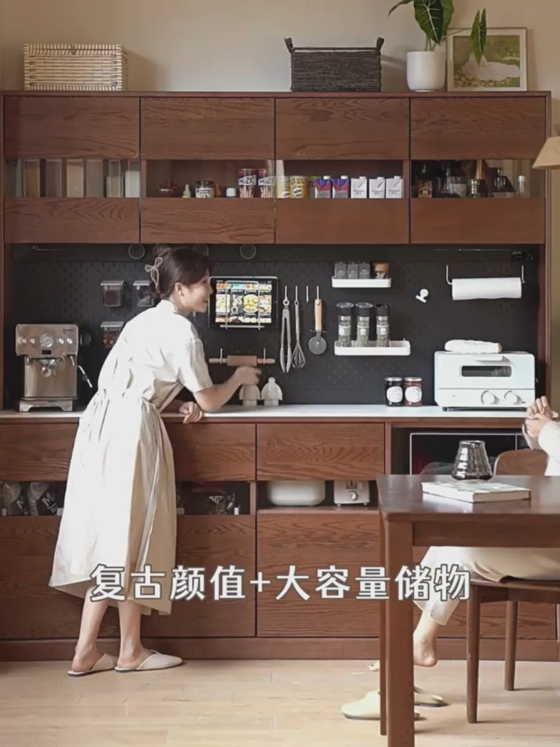 Oak Solid Wood Dining Storage Sideboard Against The Wall