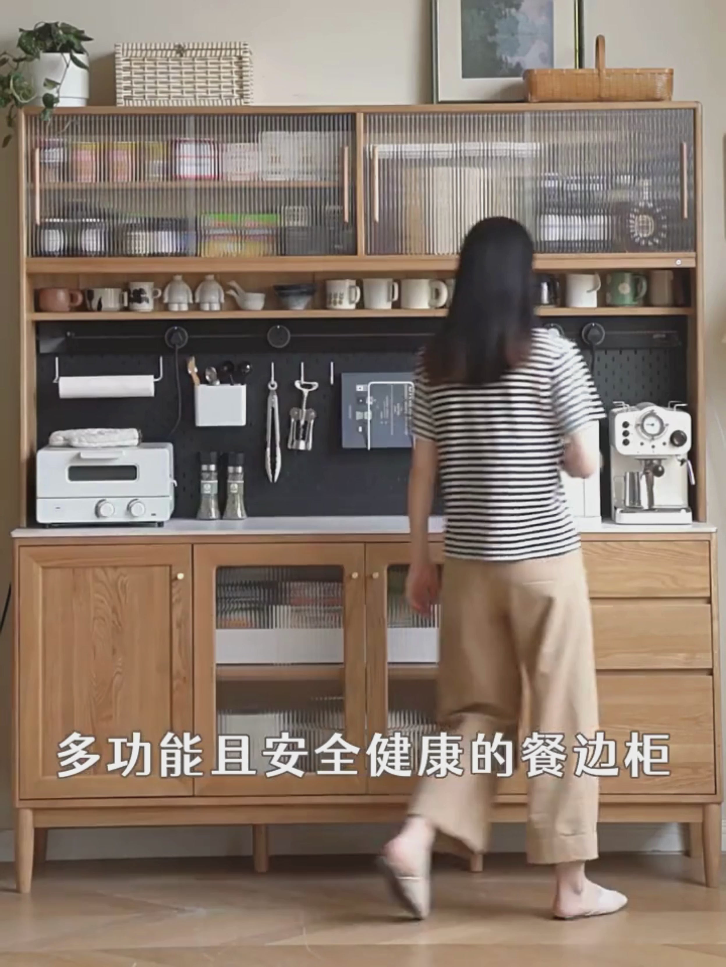 Oak solid wood sideboard household storage cabinet slate storage cabinet white oak cabinet large capacity high cabinet