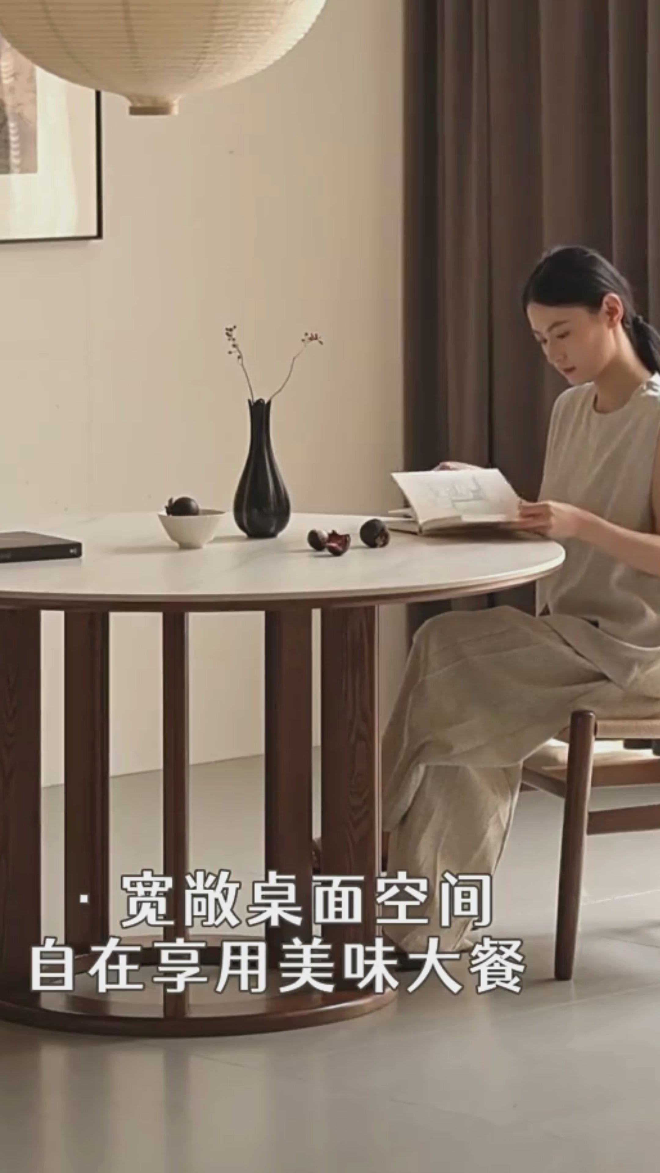 Ash Solid Wood Rock Plate Dining Table with Rotary Wheel