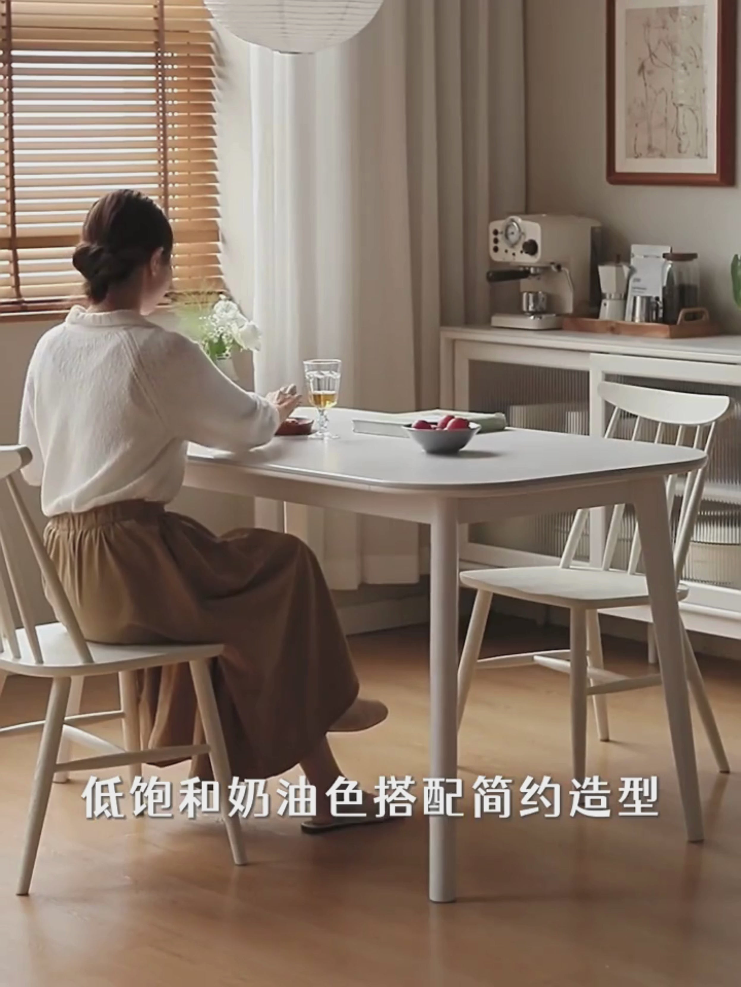 Solid Rubberwood White Cream Style Rock Board Dining Table