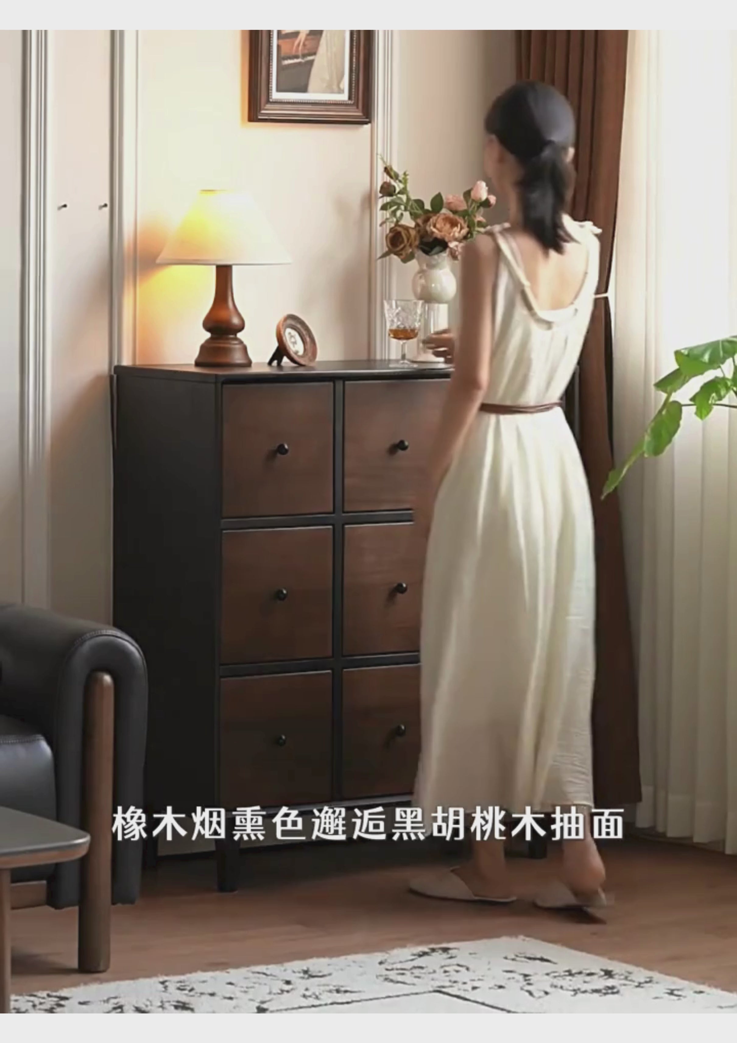 Black Walnut Solid Wood Italian Light Luxury Nine Drawer Drawer Cabinet