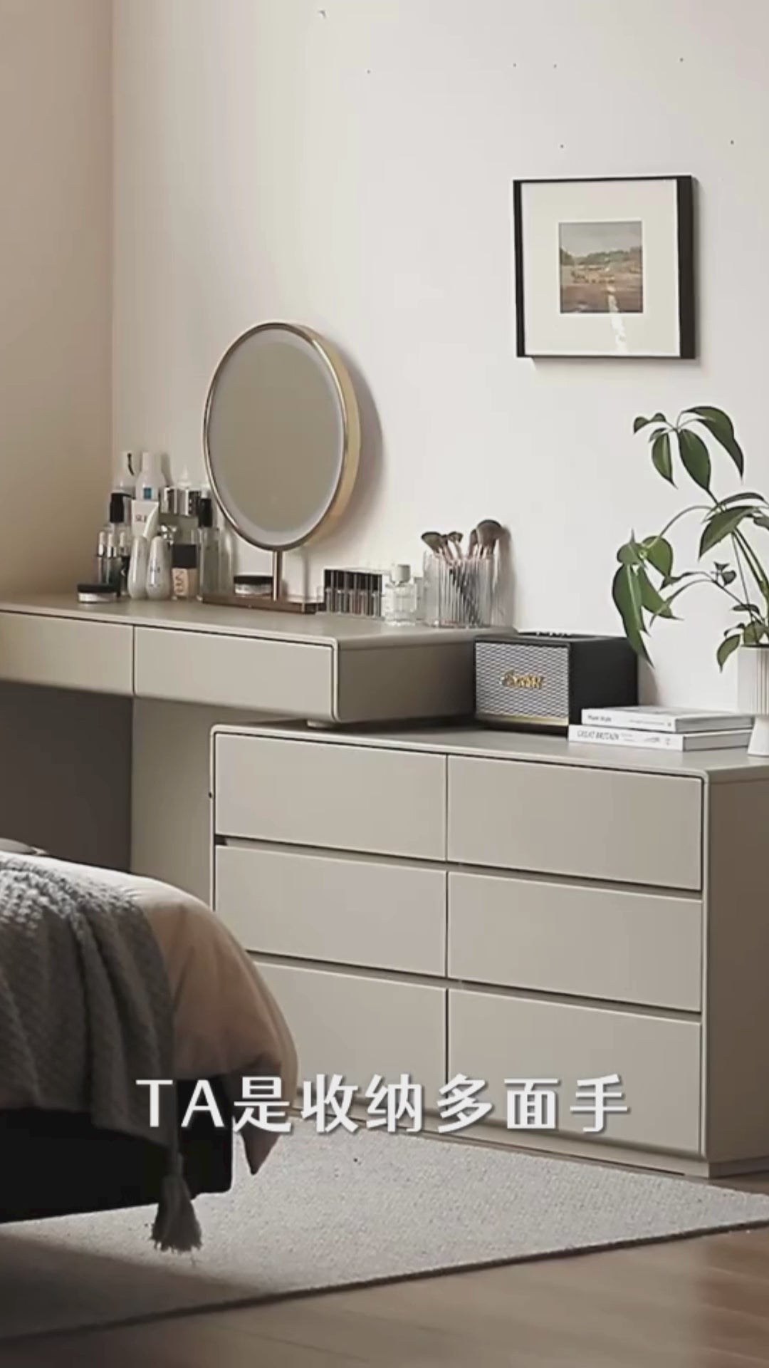 The creamy white Mulan dressing table has been well received. Based on this, we are launching a beige version. The elegant Liriodendron tulipifera, the rounded and exquisite narrow border treatment, the low- key luxury, the more you look at it, the more charming it becomes. Dressing table & chest of drawers - Get the best of both worlds -