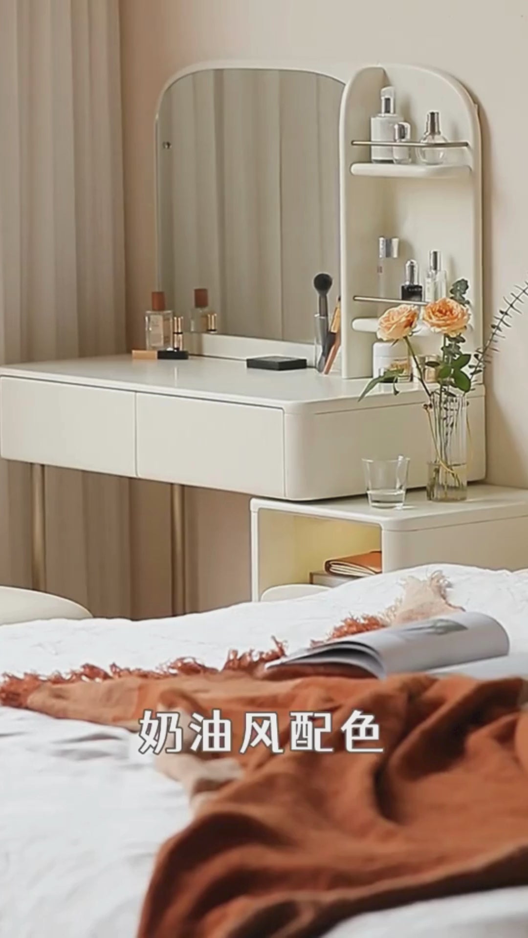 Solid Wood Dressing Table Modern Simple Bedroom Storage Cabinet Integrated Cream Style Retractable White Dressing Table.