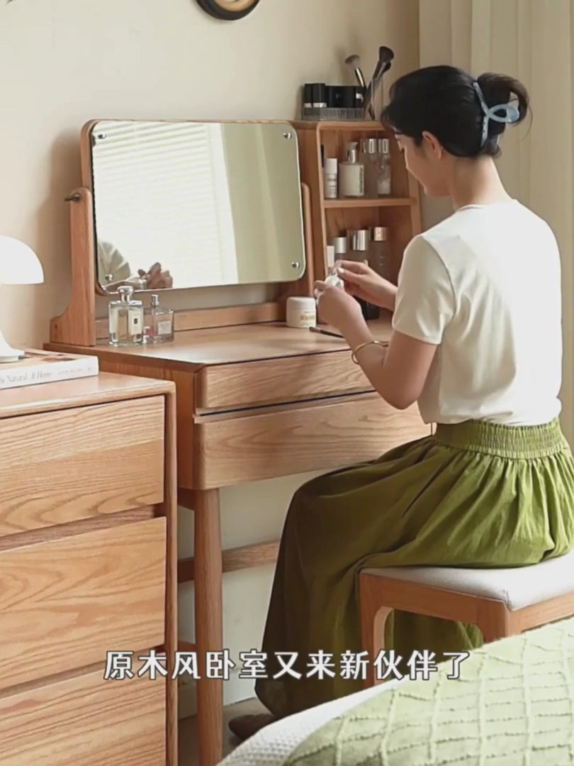 Oak, Beech Solid Wood Nordic Style Dressing Table.