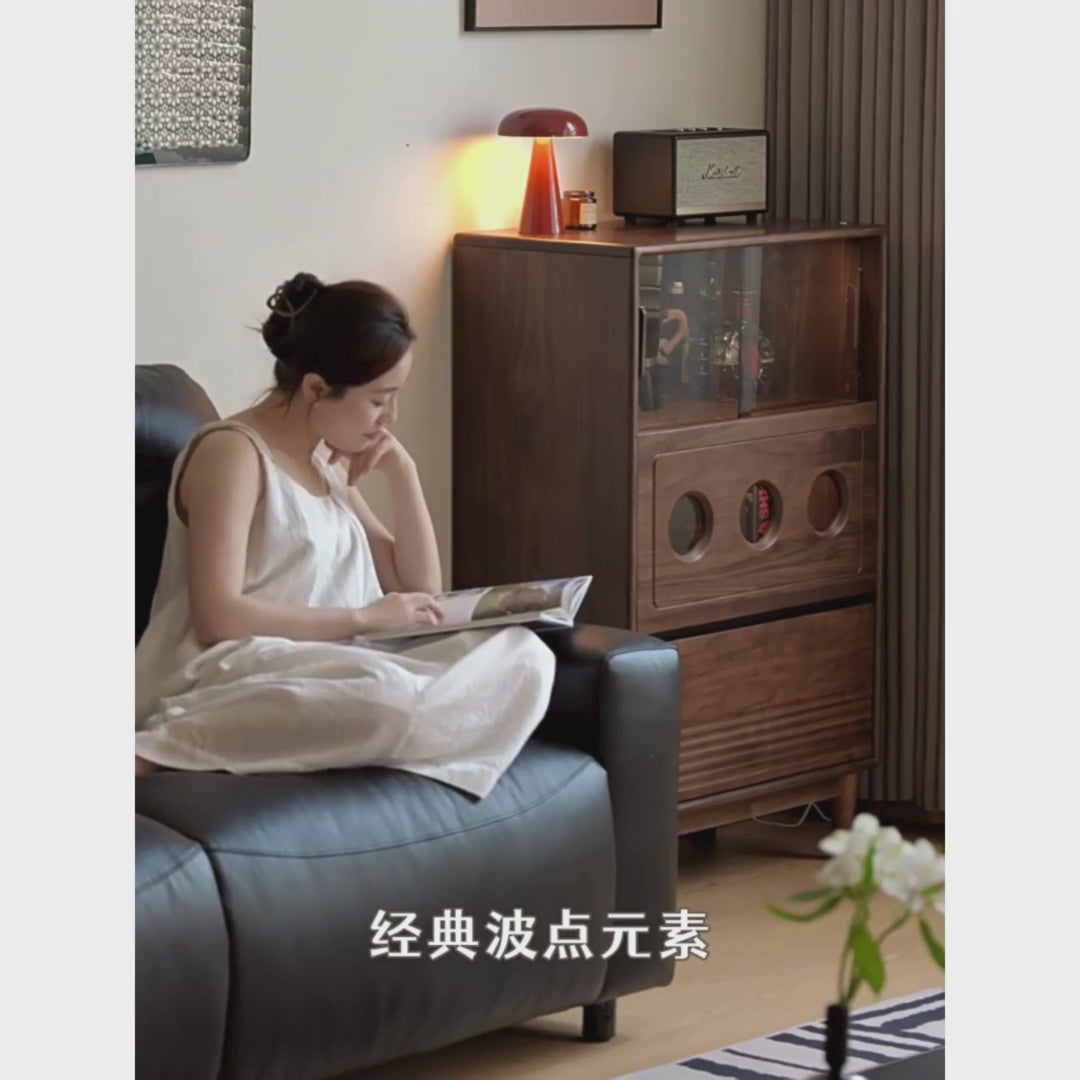 Black Walnut, Golden Sandalwood Solid Wood Antique Locker Retro Side Cabinet.