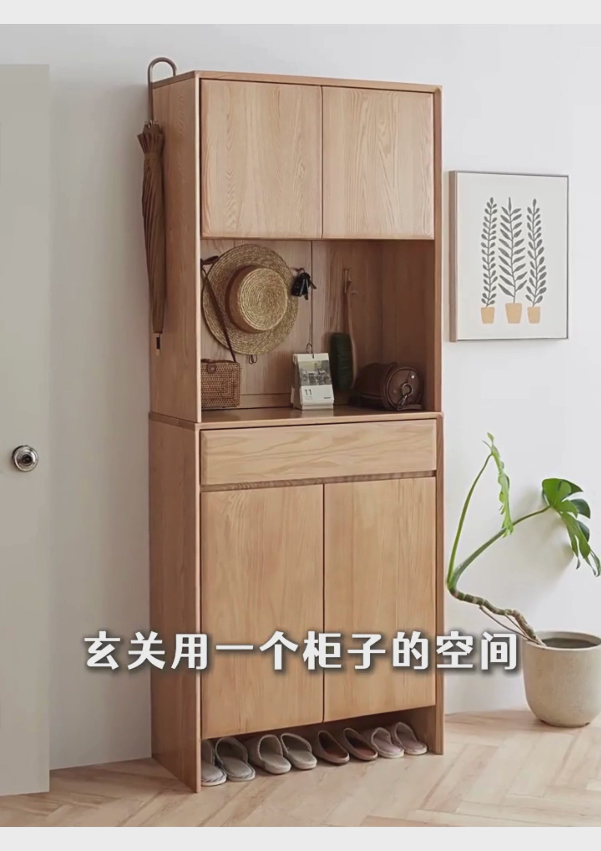 The entrance cabinet uses the space of one cabinet to complete the function of two cabinets.A variety of storage methods, utility cabinets, small hooks, shelves, drawers, and shoe cabinets are readily available.It comes with an LED sensor light that can be easily lit with a light touch, and it can be easily found in the dark night.