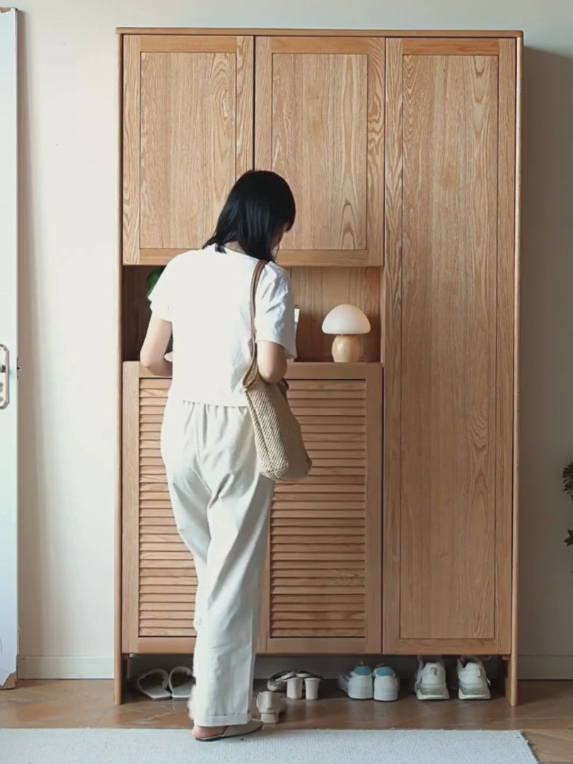 Oak, Ash Solid Wood Storage Locker Shoe Entrance Cabinet