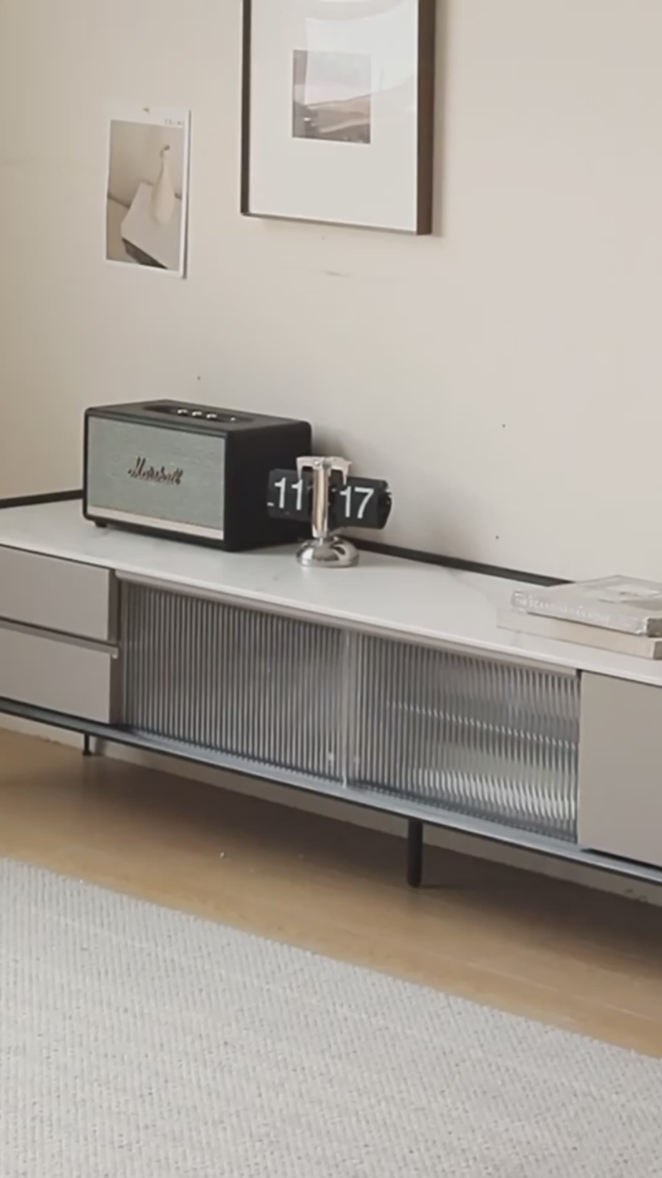 Oak, Poplar Solid Wood Light Luxury Rock Slab Double Drawer TV Cabinet