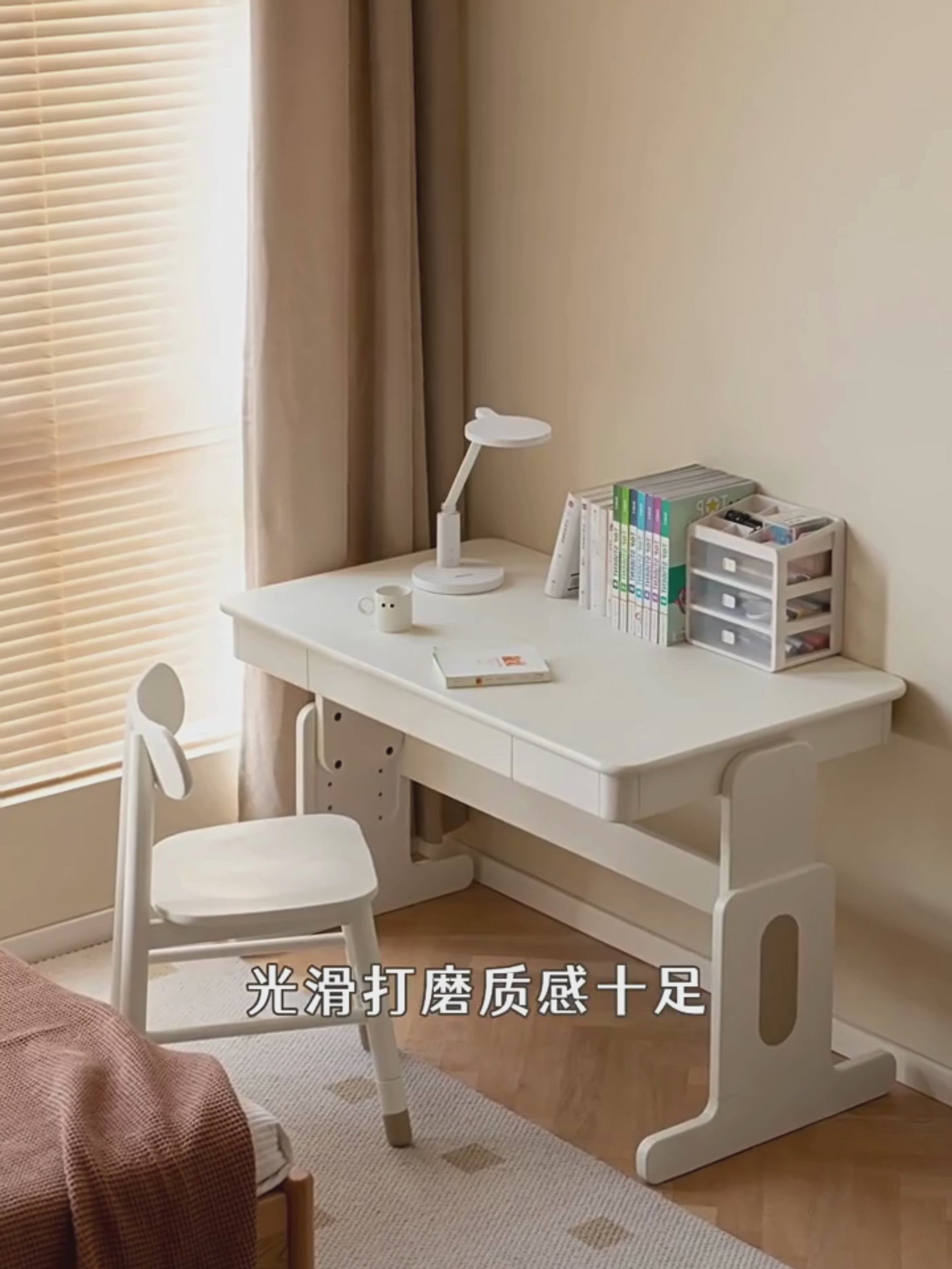 Beech Solid Wood Lift Study Desk Adjustable White Children's Desk