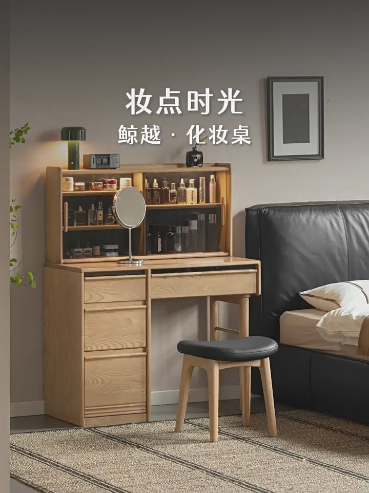 White Ash Solid Wood Modern Multifunctional Vanity Table.