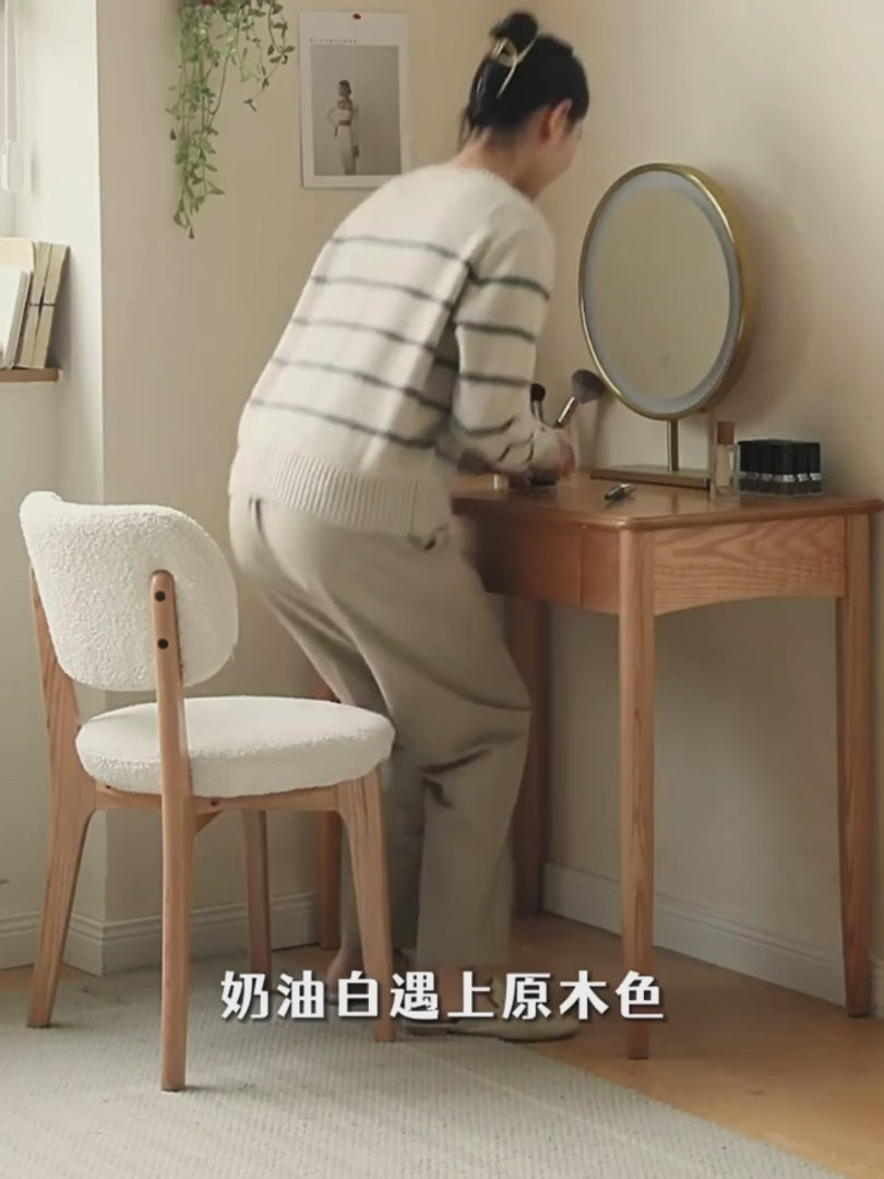 The soft sherpa velvet is matched with the mountain pattern of oak, and the makeup chair can also have a gentle temperament.