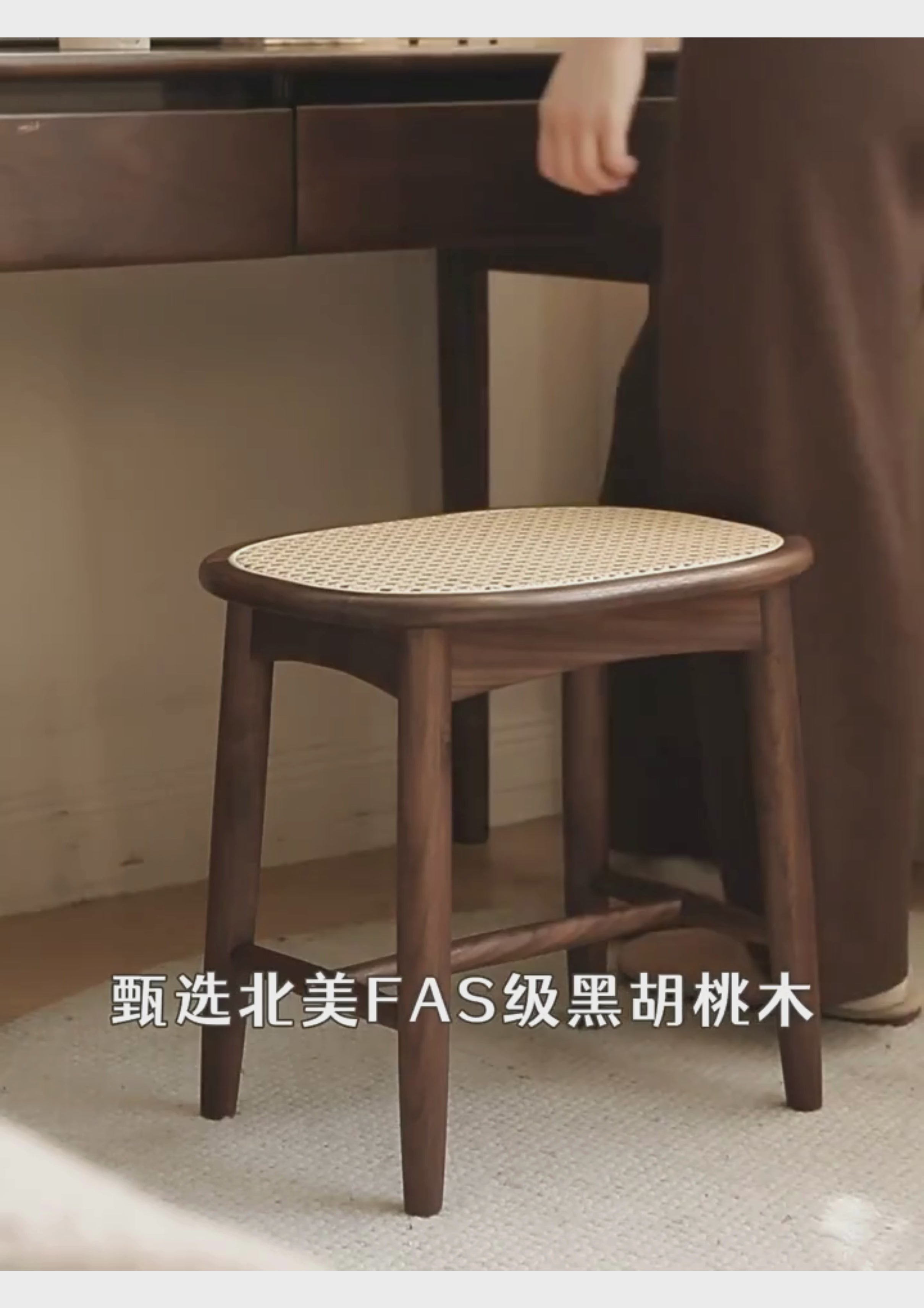 Black Walnut, Oak Solid Wood Modern Makeup Stool