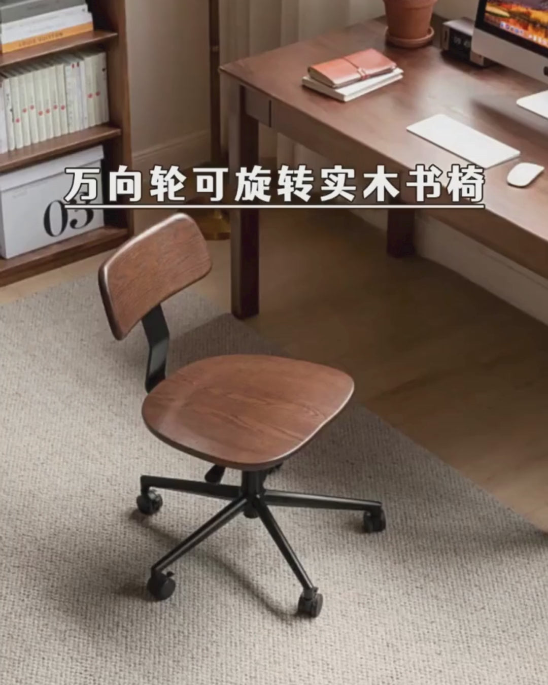Oak Solid Wood Modern Simple Lift Computer Rotatable Chair