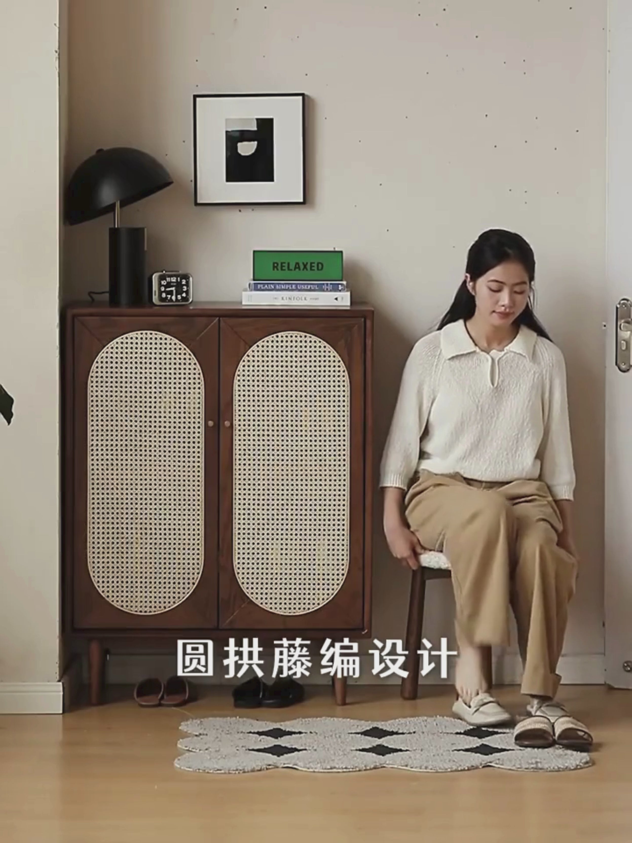 The entrance has a sense of atmosphere, an artifact, and a stunning sense of design when you enter the door. the unique arched design of the shoe cabinet refuses to be rigid, and the smart arc is matched with literary and artistic rattan. relaxed is fresh and natural, light and breathable.