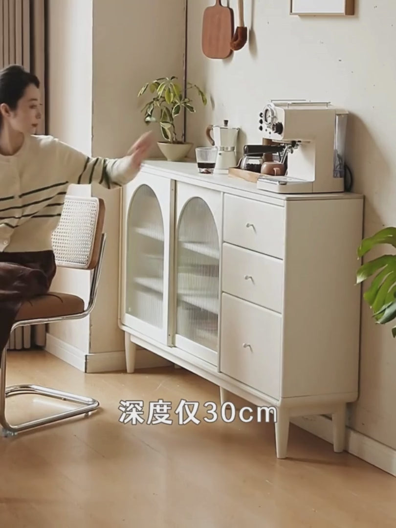 Solid wood rock slab sideboard cream style ultra-thin wall storage storage cabinet restaurant cabinet side cabinet