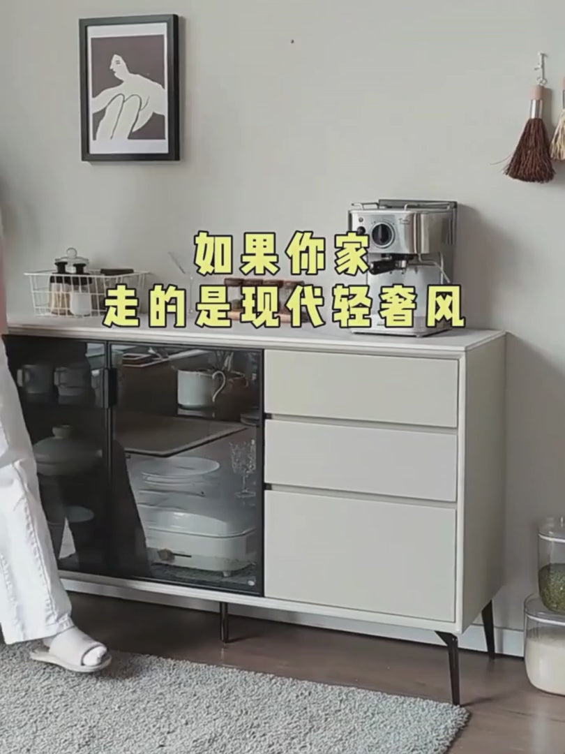 Poplar Solid Wood Rock Board Glass Door Dining Sideboard