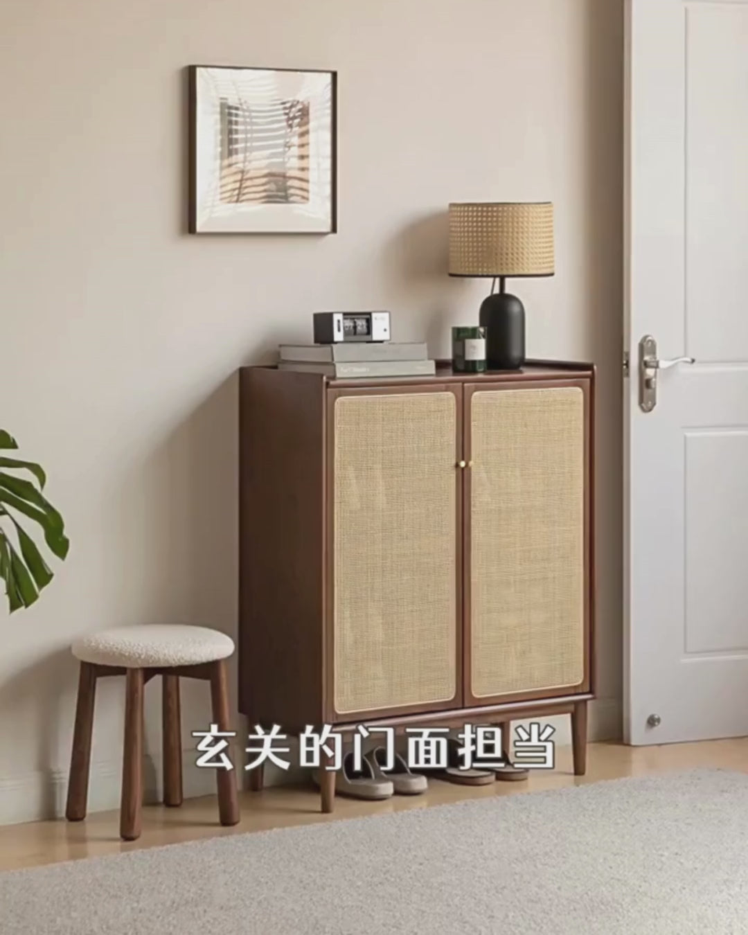 Oak Solid Wood Door Rattan Shoe Cabinet