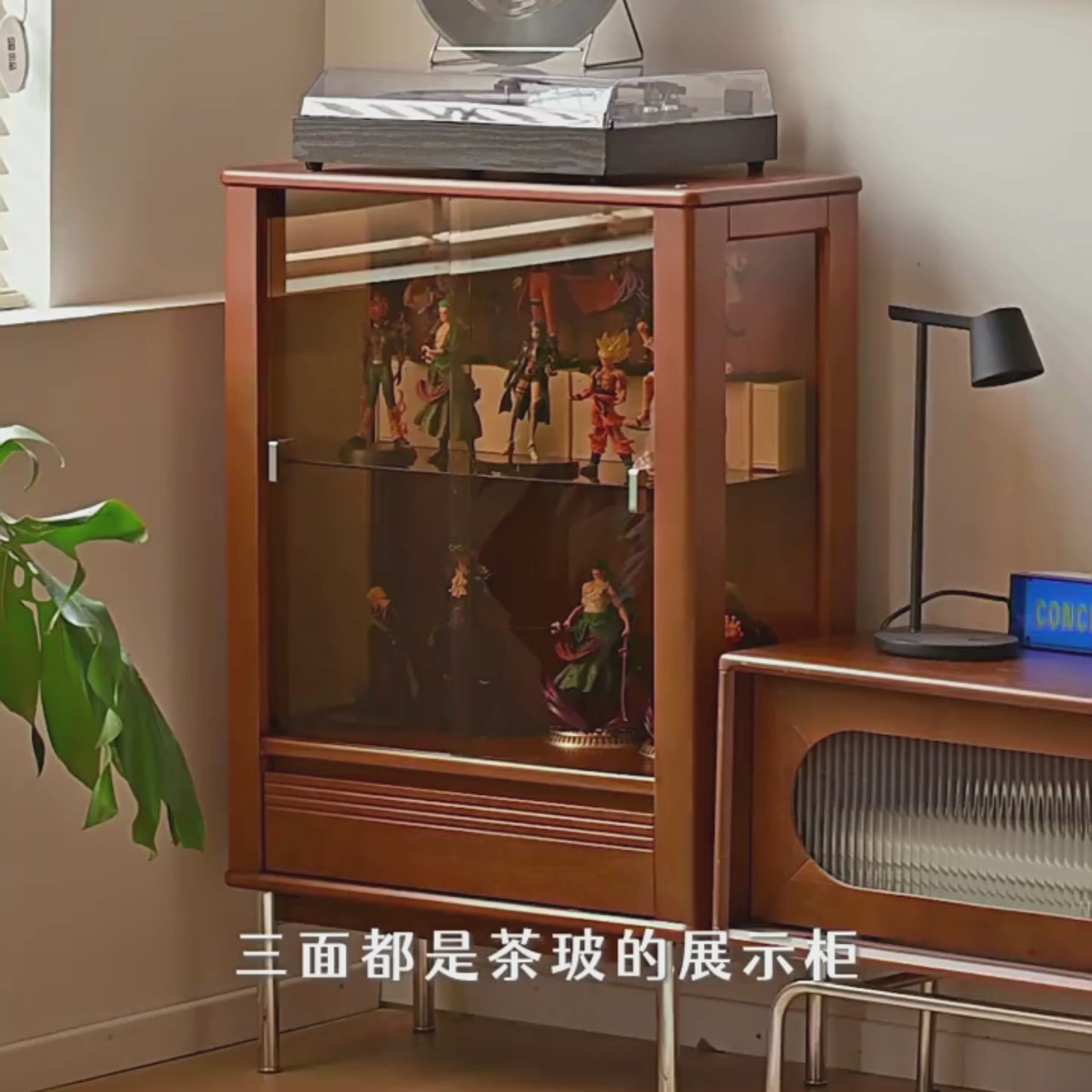 Poplar Solid Wood American Retro Glass Side Cabinet