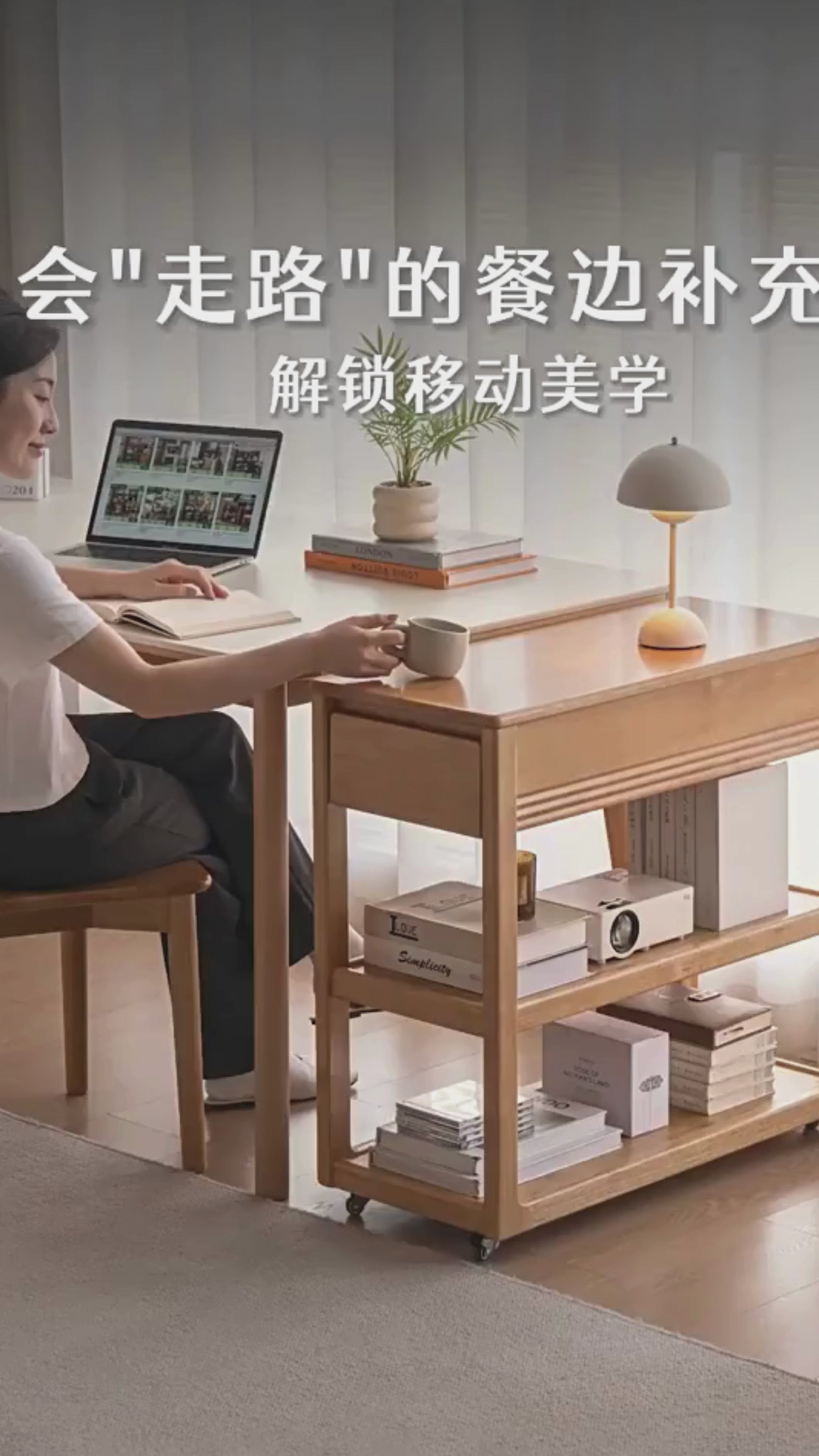 Solid Rubberwood Movable Sideboard