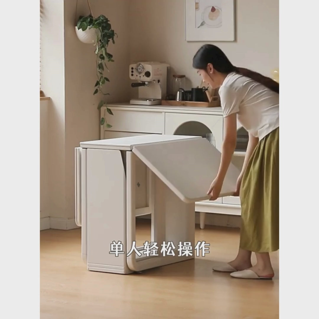 Poplar Solid Wood Cream Wind Rock Slab Folding Dining Table