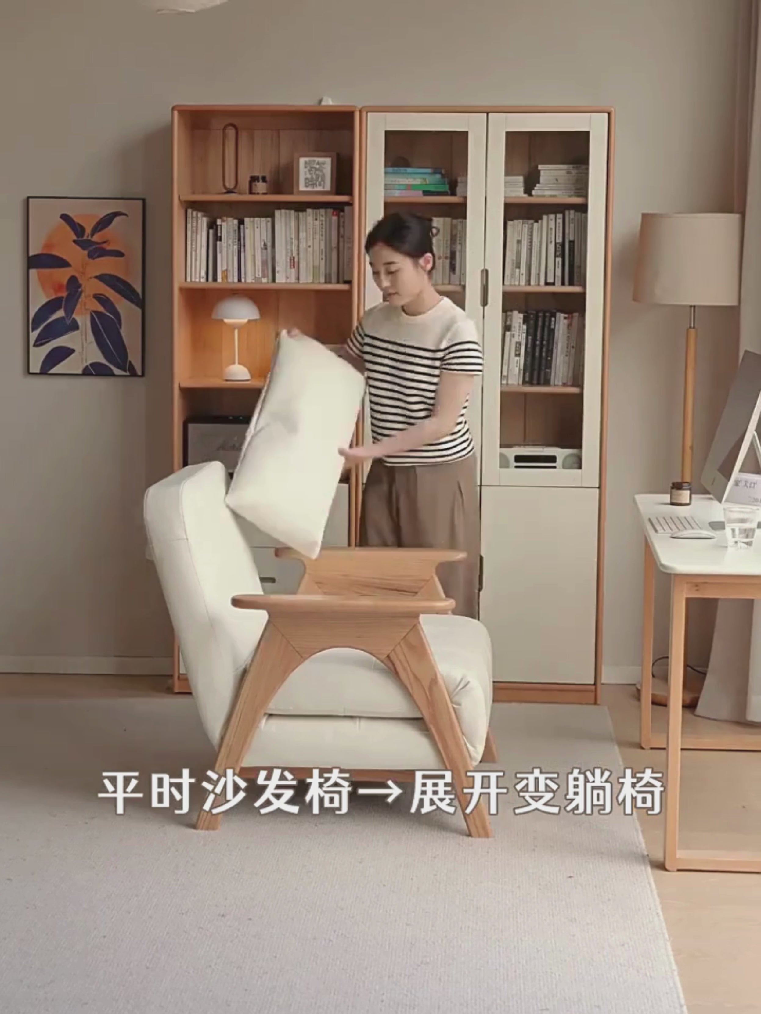 Oak, Beech Solid Wood Folding Dual-Purpose Sofa Chair.