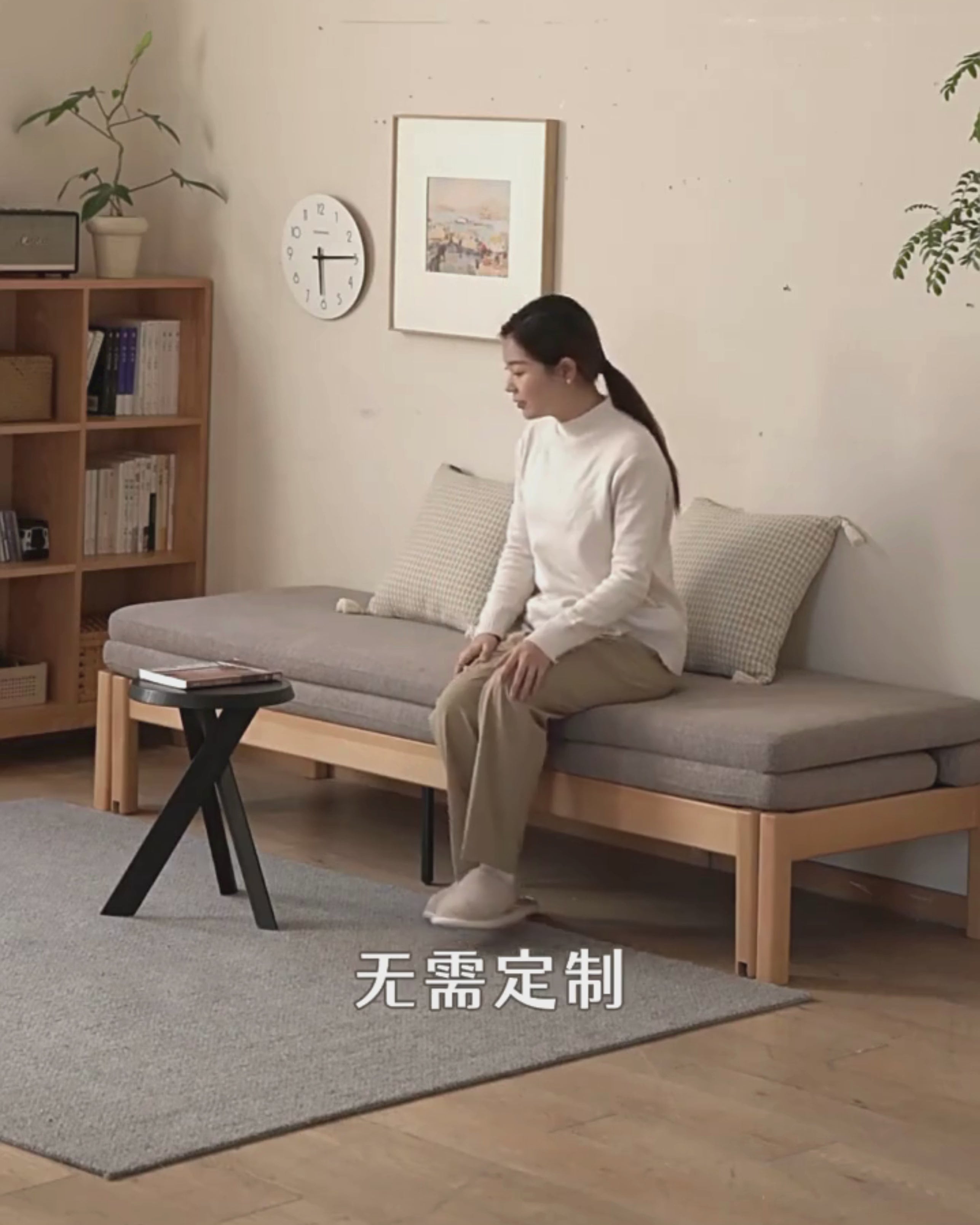 Oak Solid Wood Sofa Bed Folding Multi-functional Telescopic.
