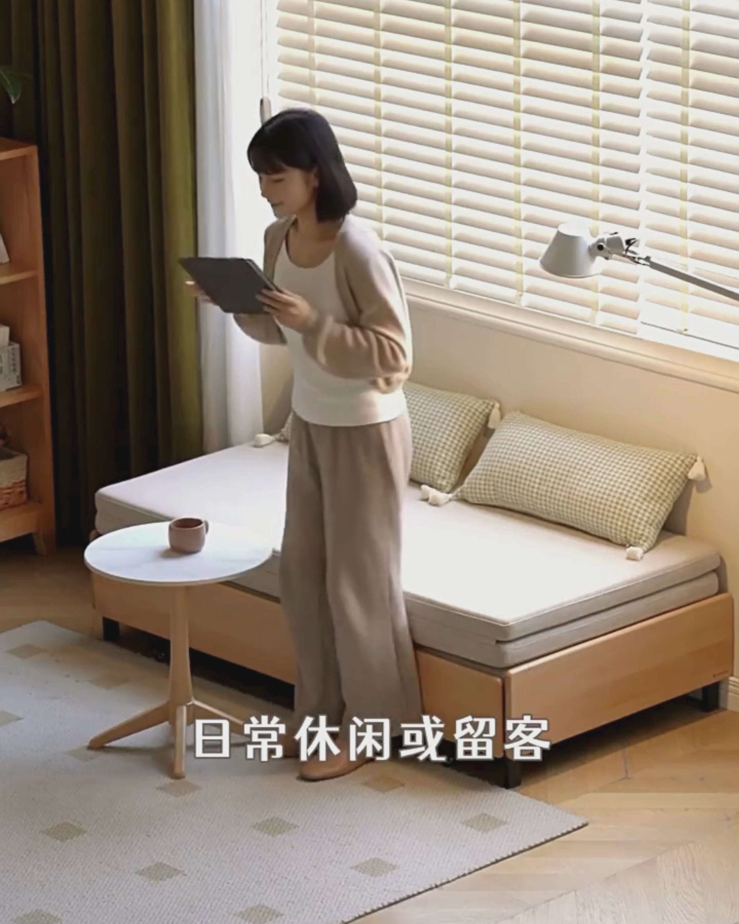 Oak Solid Wood Sofa Bed Folding Sit-sleeping Pull-out Bed.