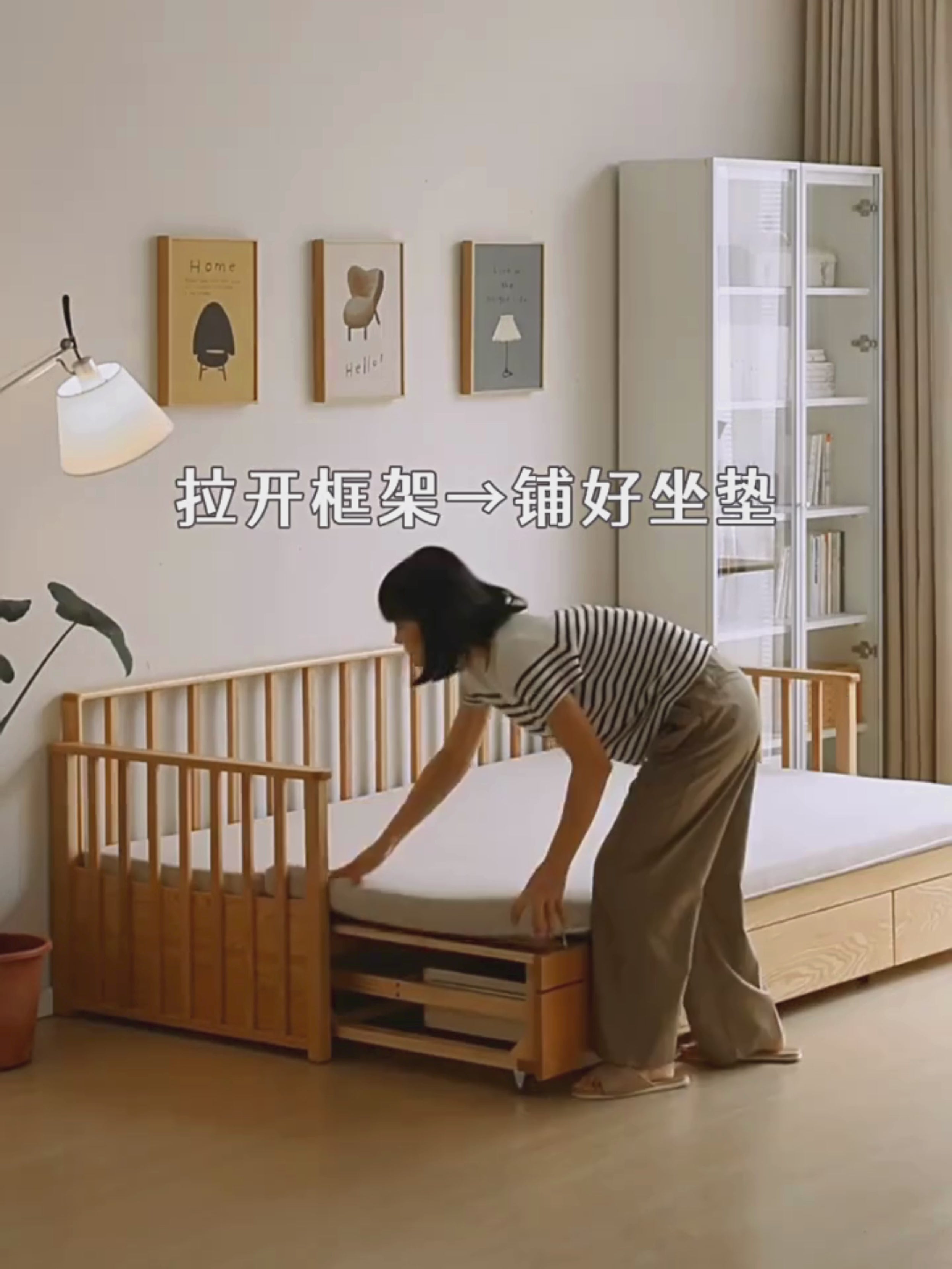 Oak Solid Wood Sitting and Sleeping Dual-purpose Storage Sofa.