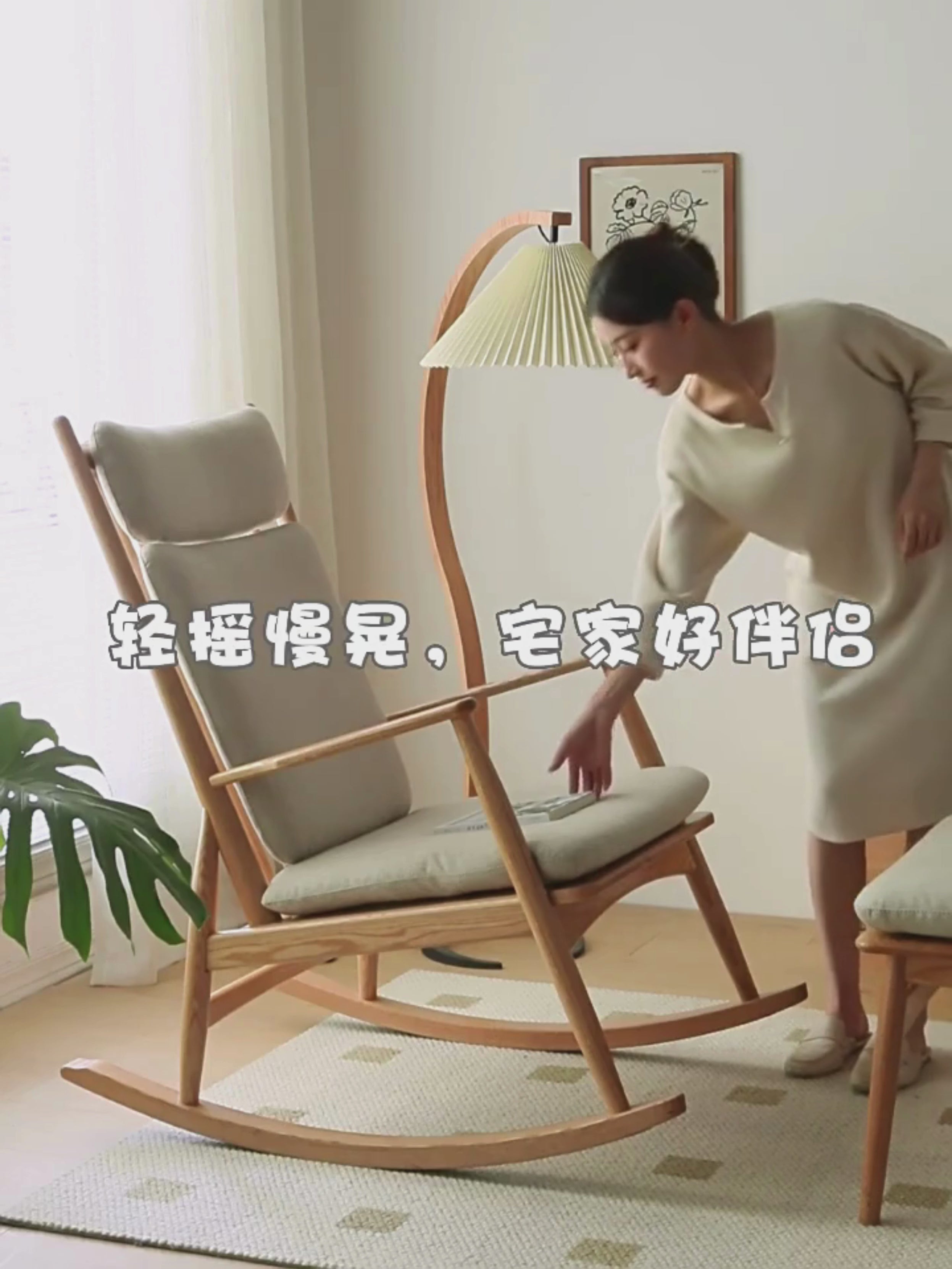 Oak Solid Wood Genuine Leather Rocking Chair :