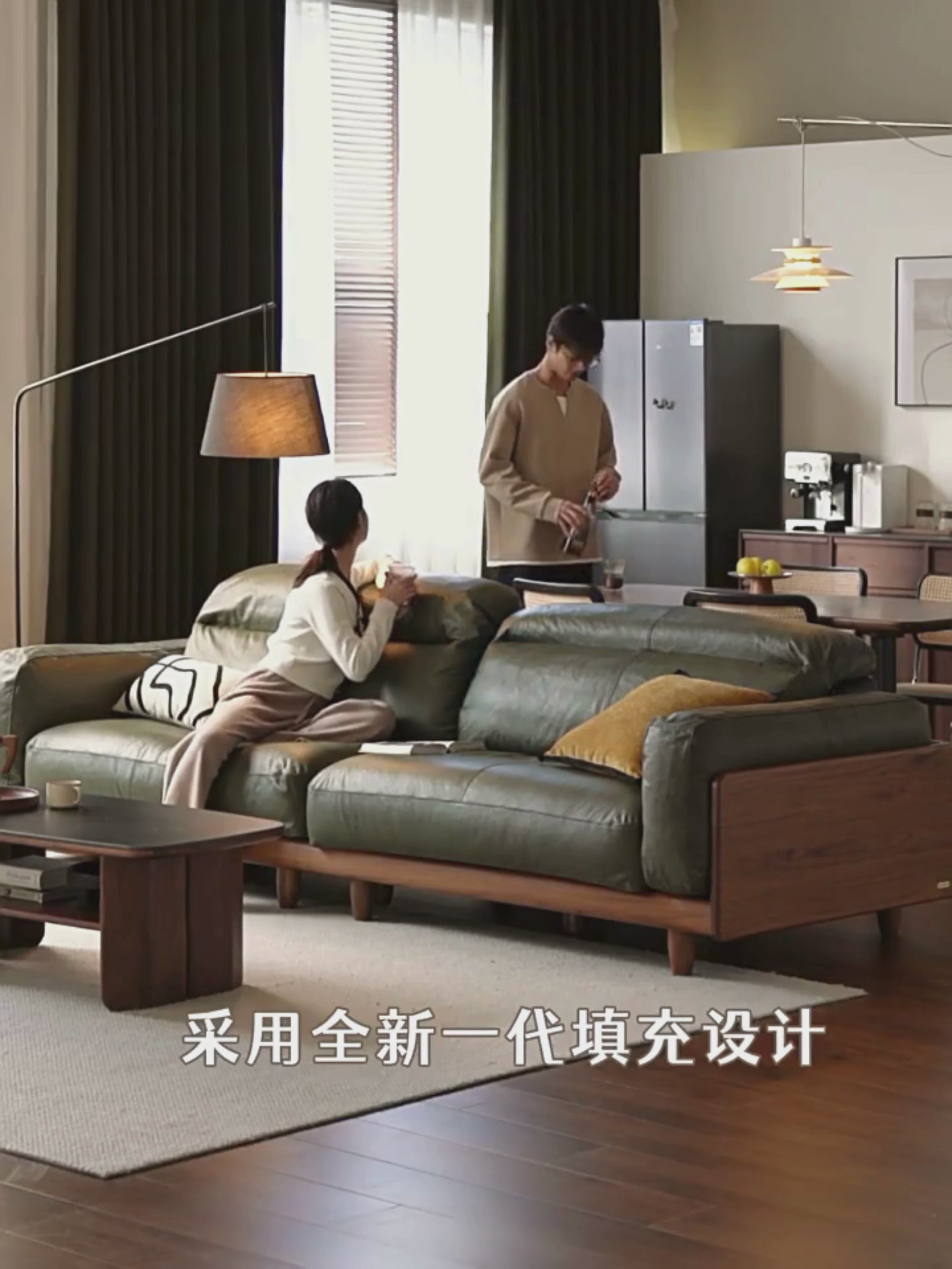 Black Walnut, Poplar Solid Wood Leather Sofa Italian Light Luxury.